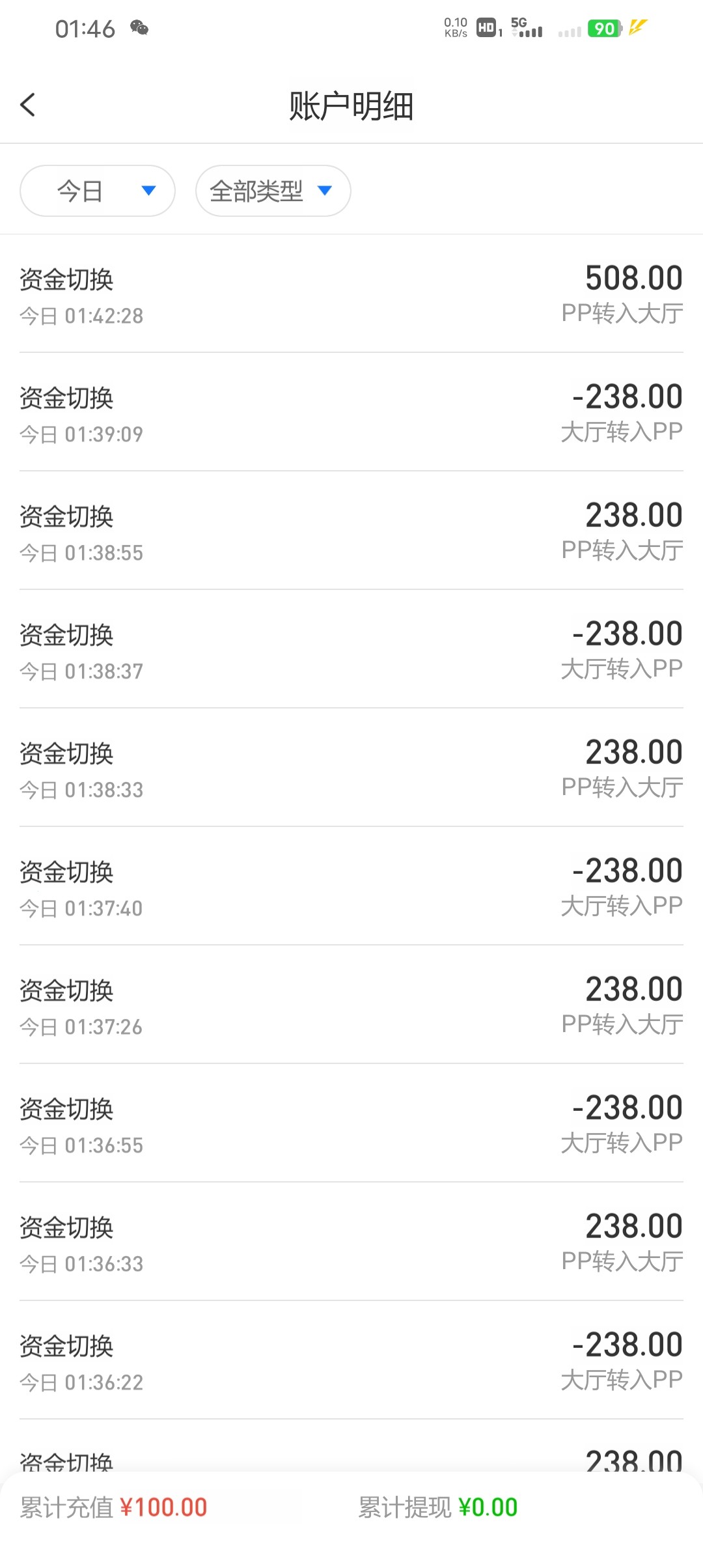 充了50➕28提了