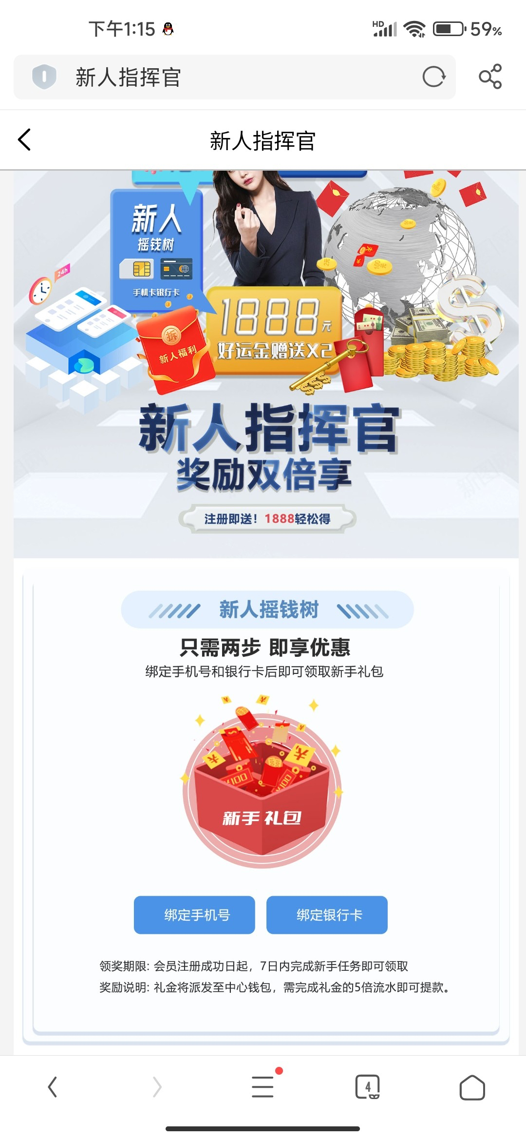 新用户注册绑卡优惠活动第1个自助领取,应该都是送的18/5倍流水提现。勿充值