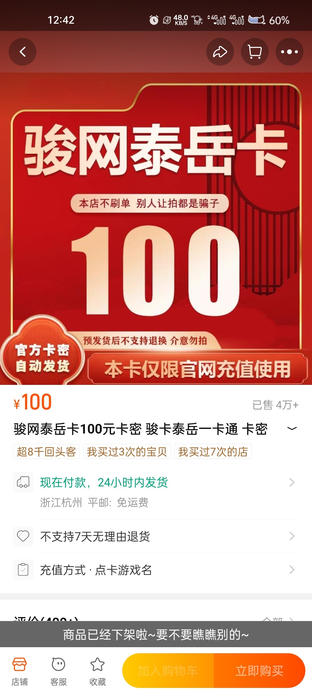 聚合卡充值的可以申请退款,只要你上完分,他下架了商品就可以直接申请退款,商家拒绝申请客户介入,然后说这个商家搞诈骗,买完虚假发货心虚了立马下架了商品,淘宝客户直接给你退钱