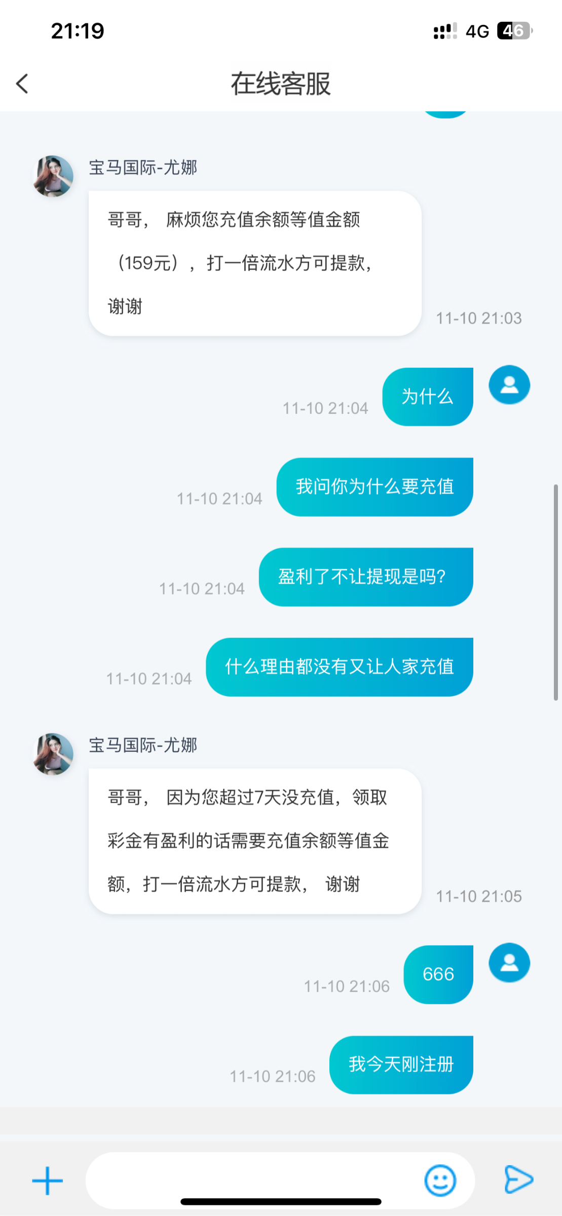 充值了10+送28打到159提现不出找各种理由