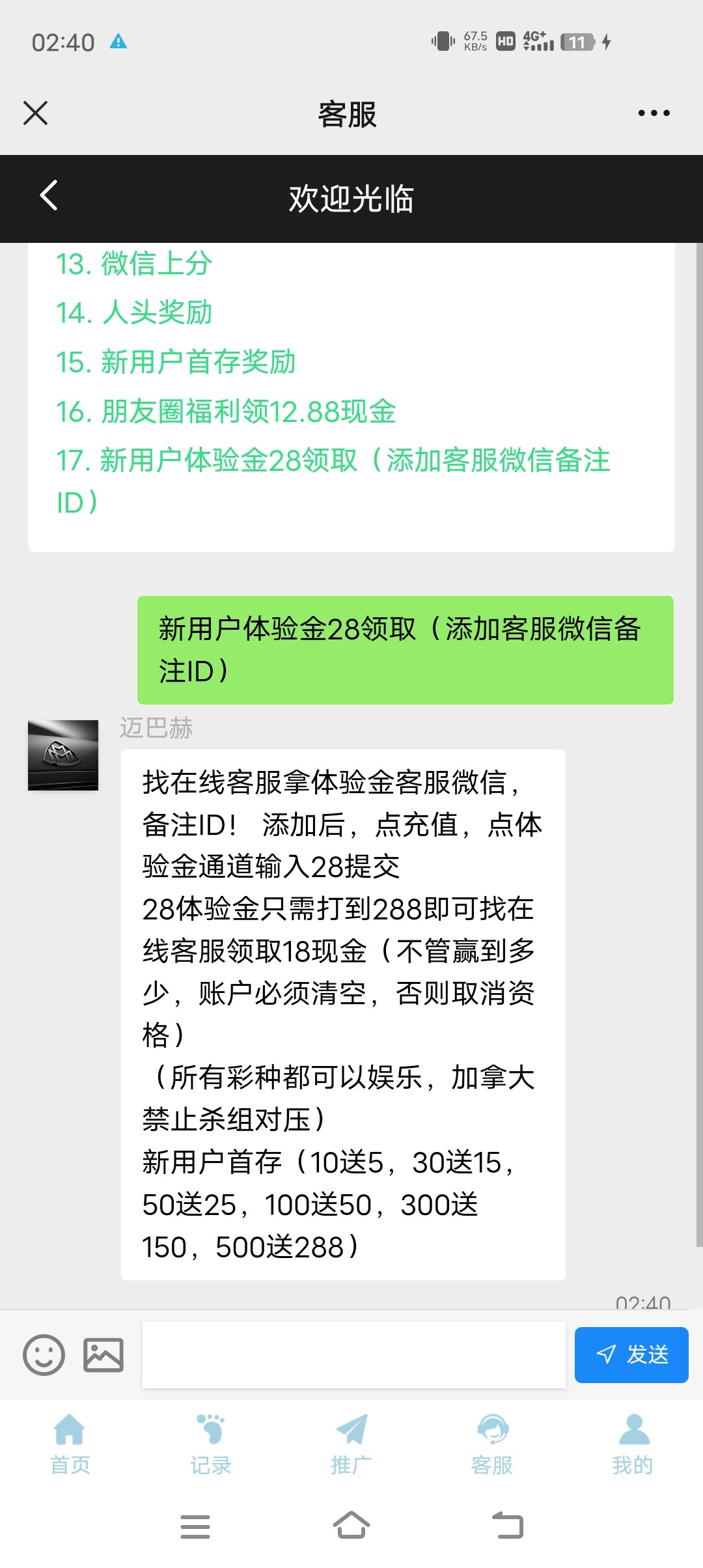 微信扫码提交28体验金打到288可提现18现金
