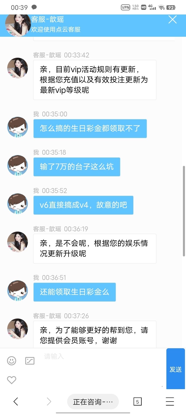 原来等级vip6给我降成vip4了,搞的生日彩金vip5才能领,388都坑
