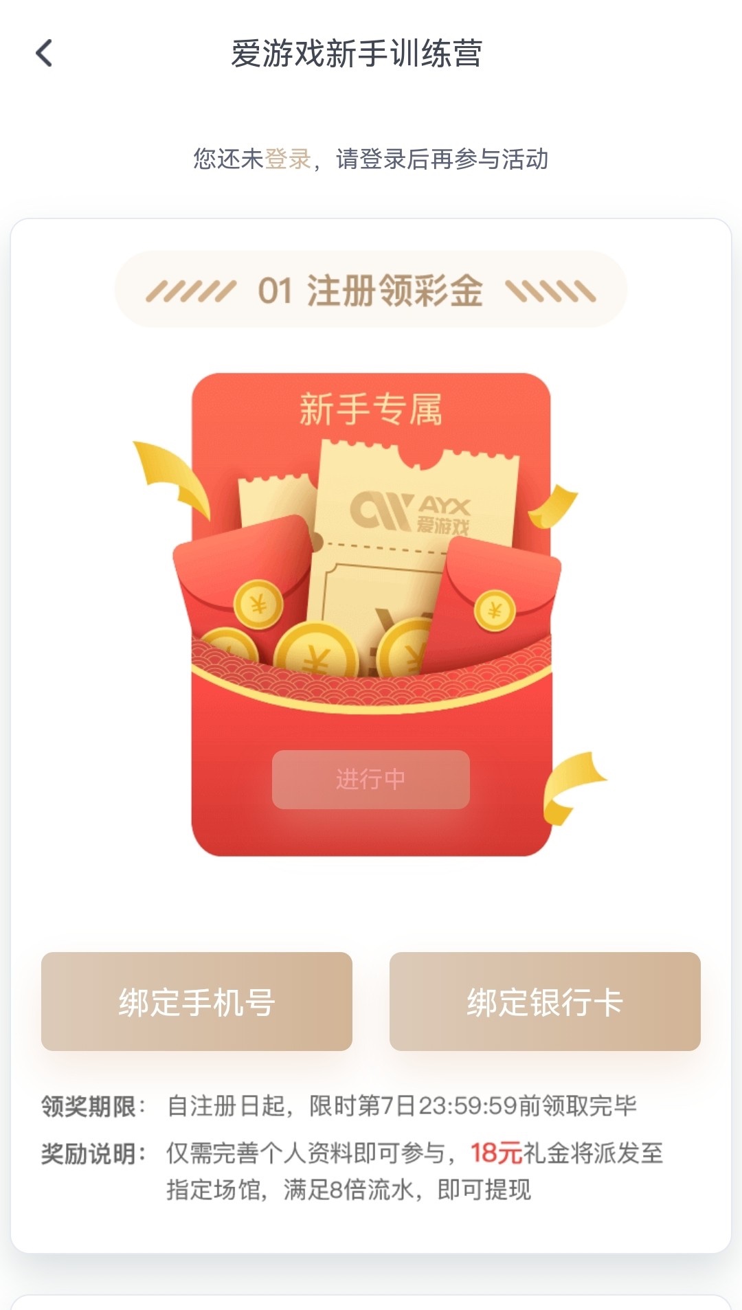 新用户下载注册绑卡活动里新人活动自助领取18/3水/100提现