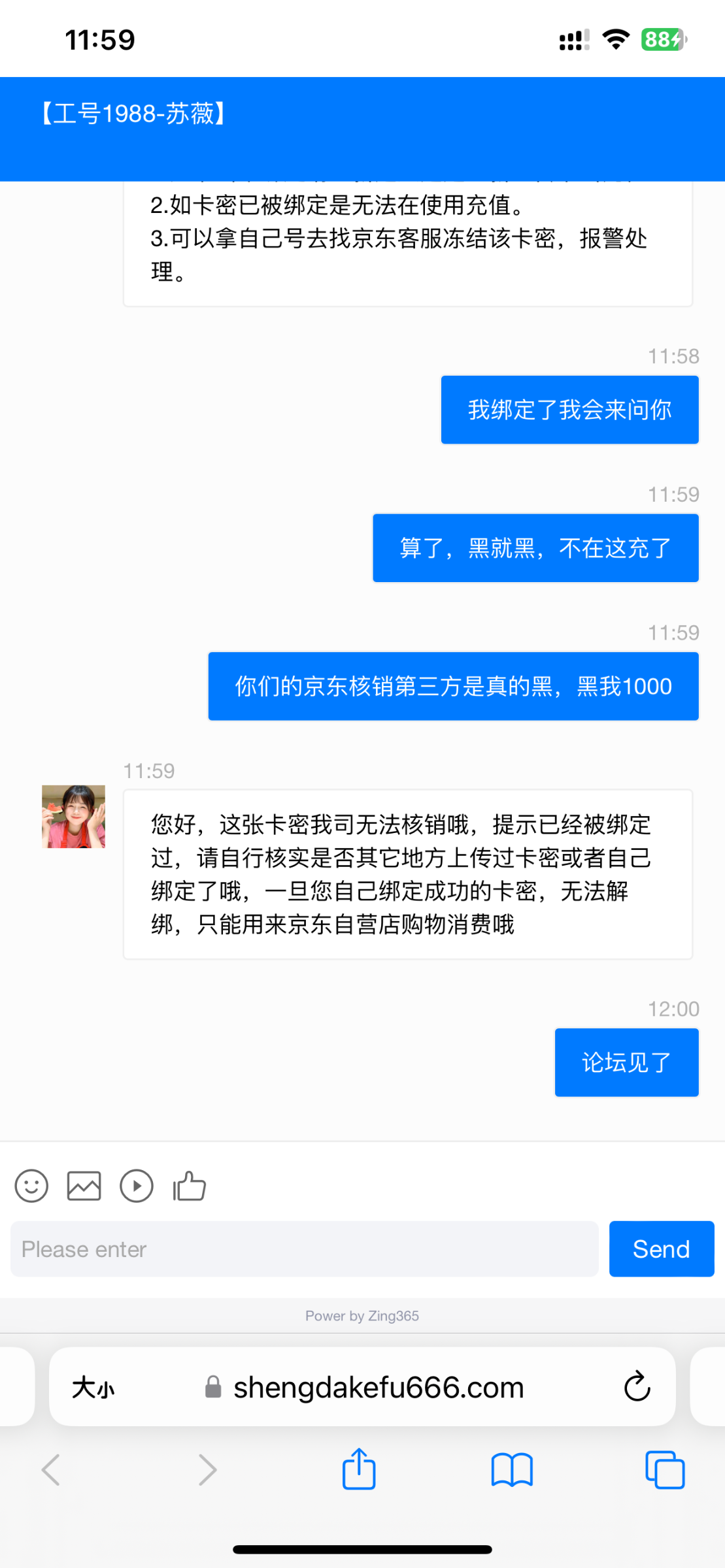 就在他的京东充值通道提交了卡密,卡密被他绑了,不给上分,在淘宝买了几万的卡,就在盛大会这样