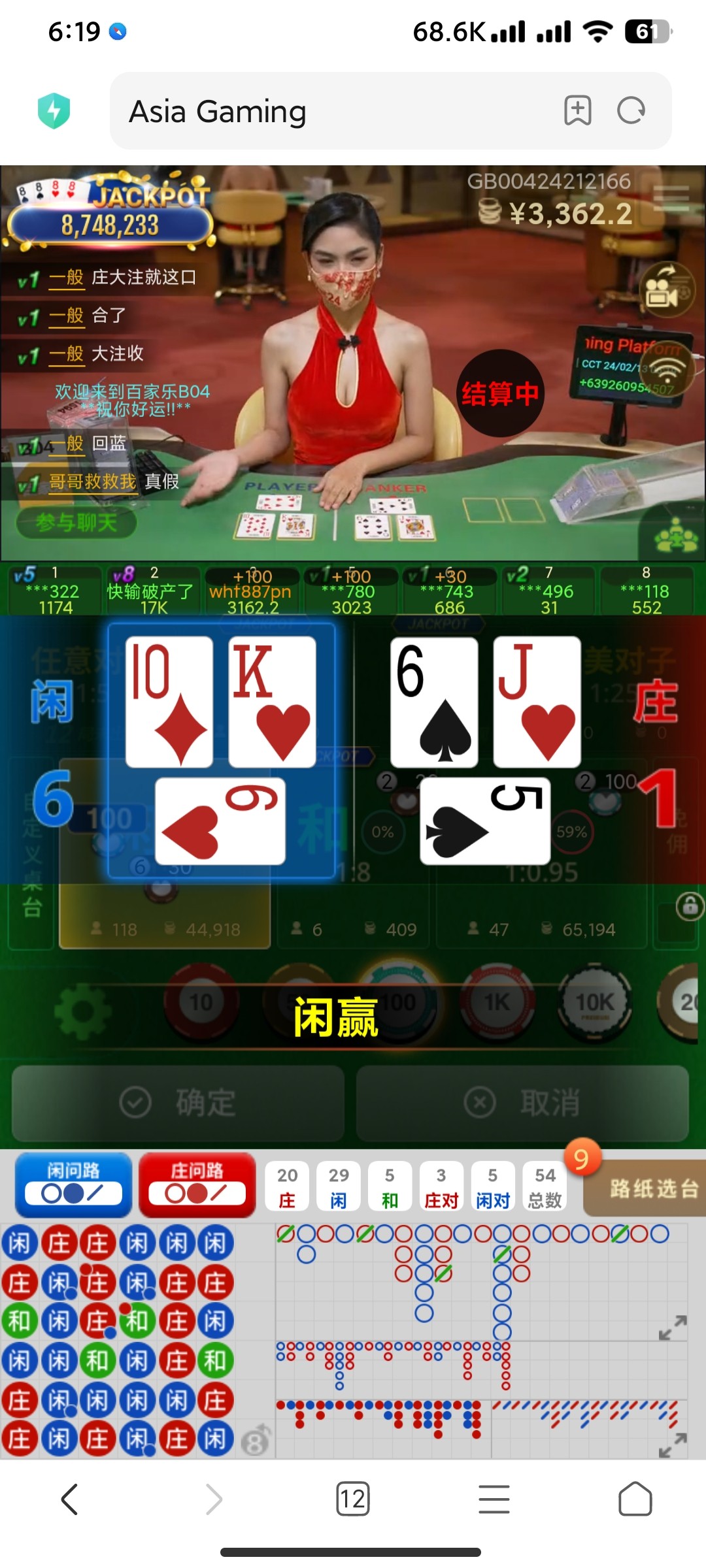 我以为你麻将1要起飞了,6块钱的注,就10倍。