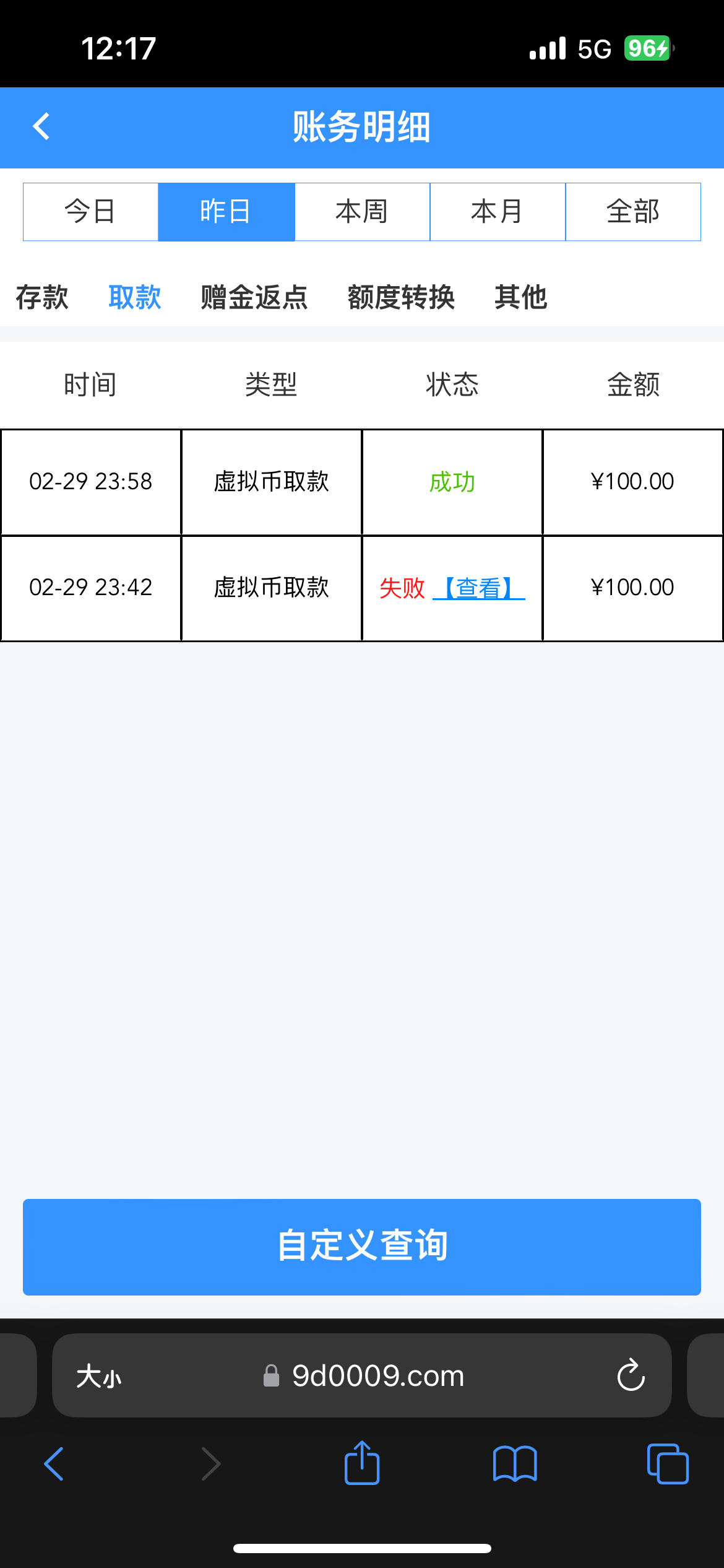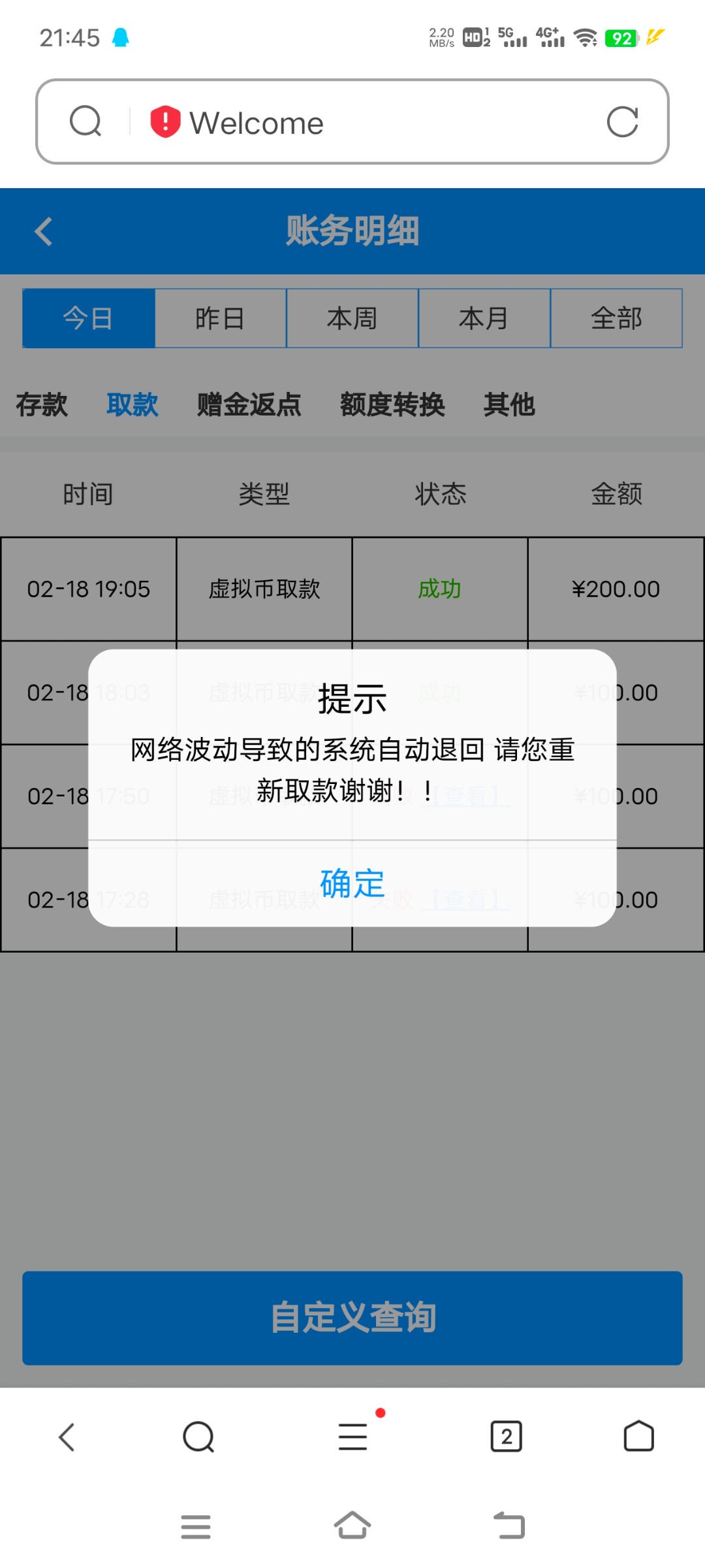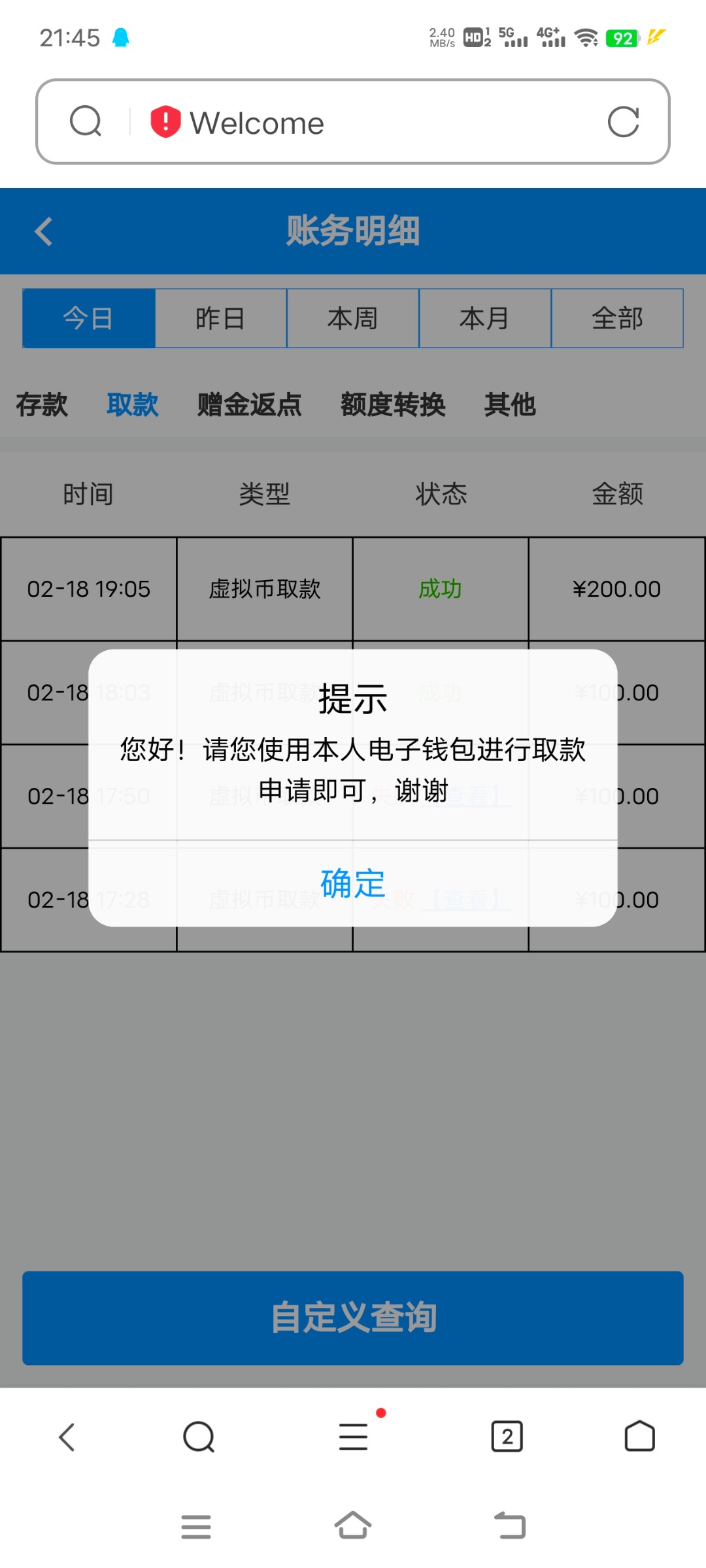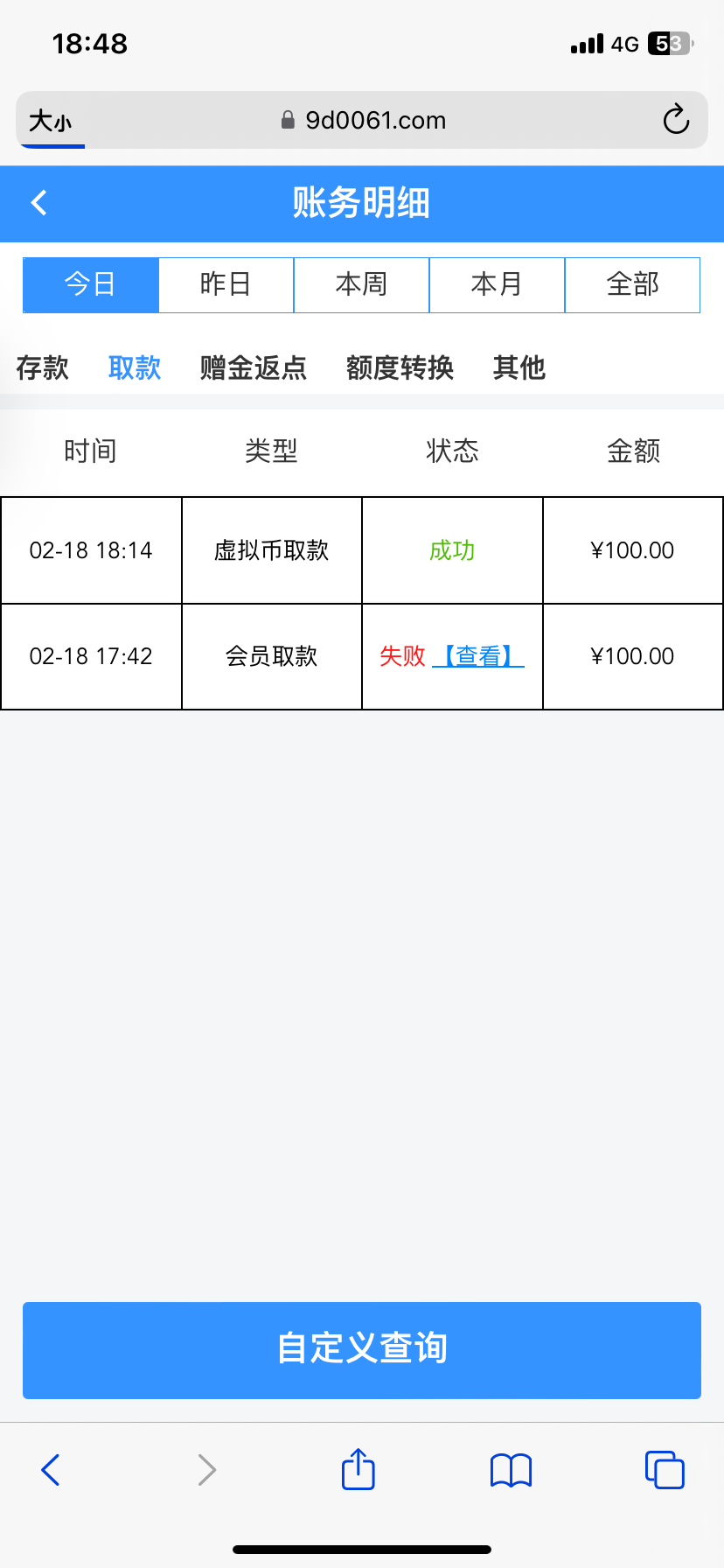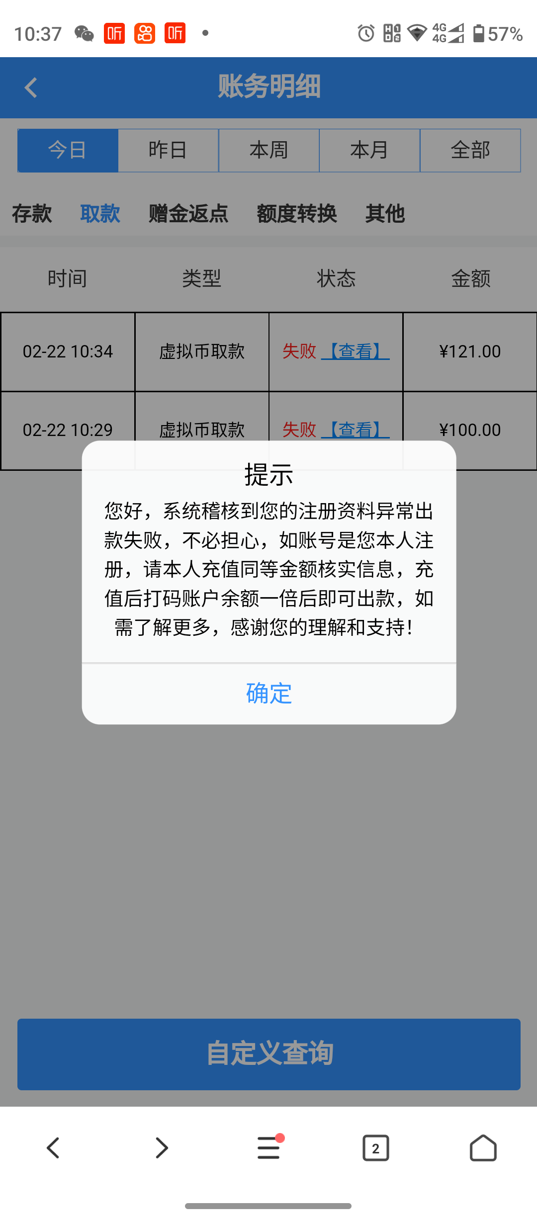 黑了100,资料异常要充值