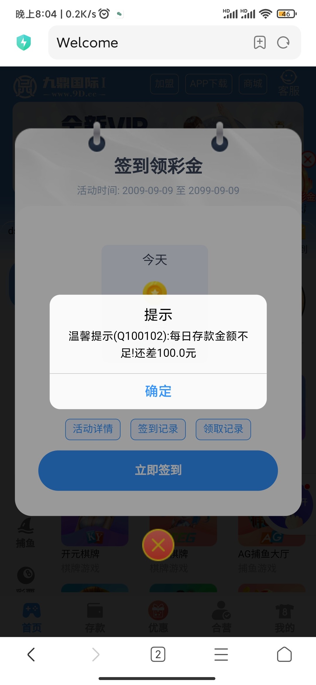 尘落 这种签到提款都要存款或者直接封号