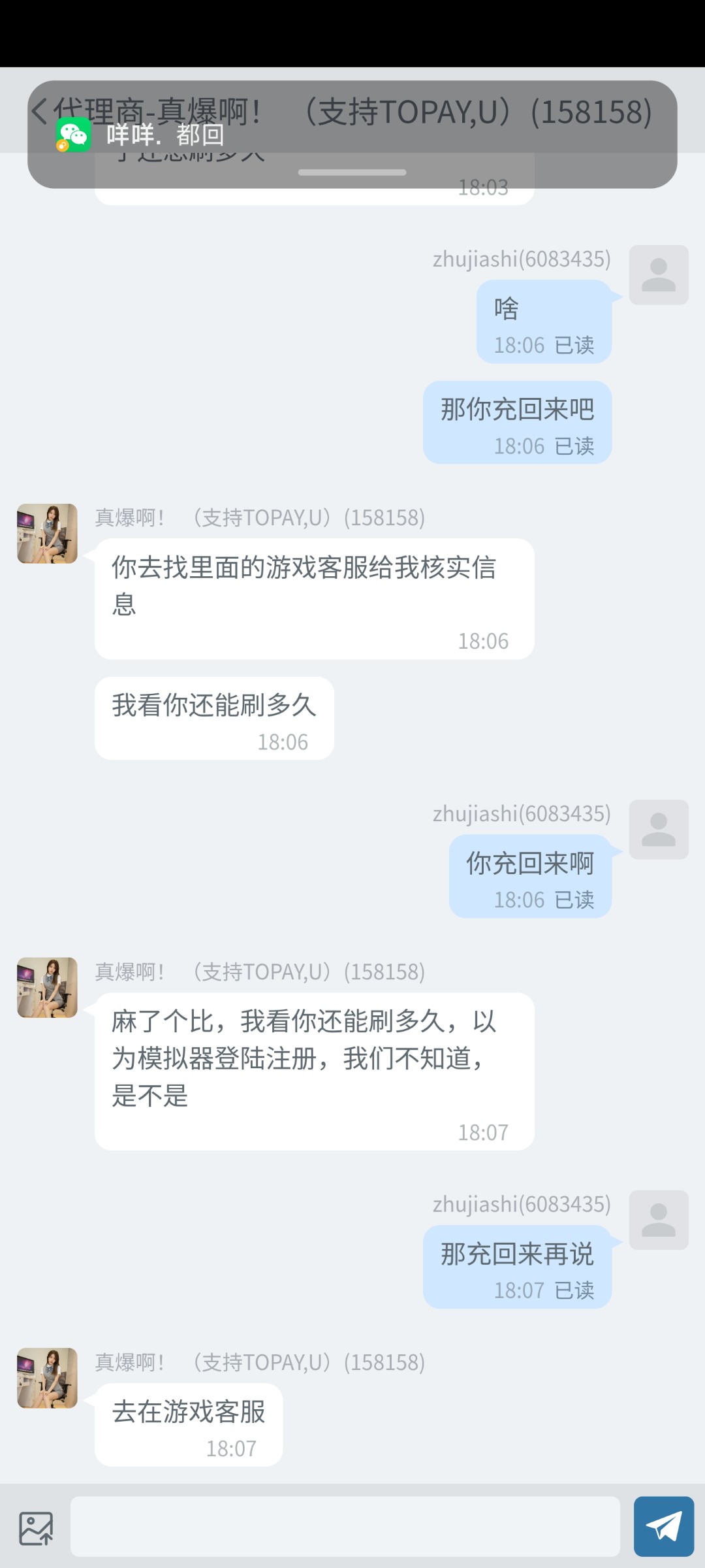 我前年也刷过一个下分台,下了两千多。再去上分代理直接问我上分是不是为了下分。