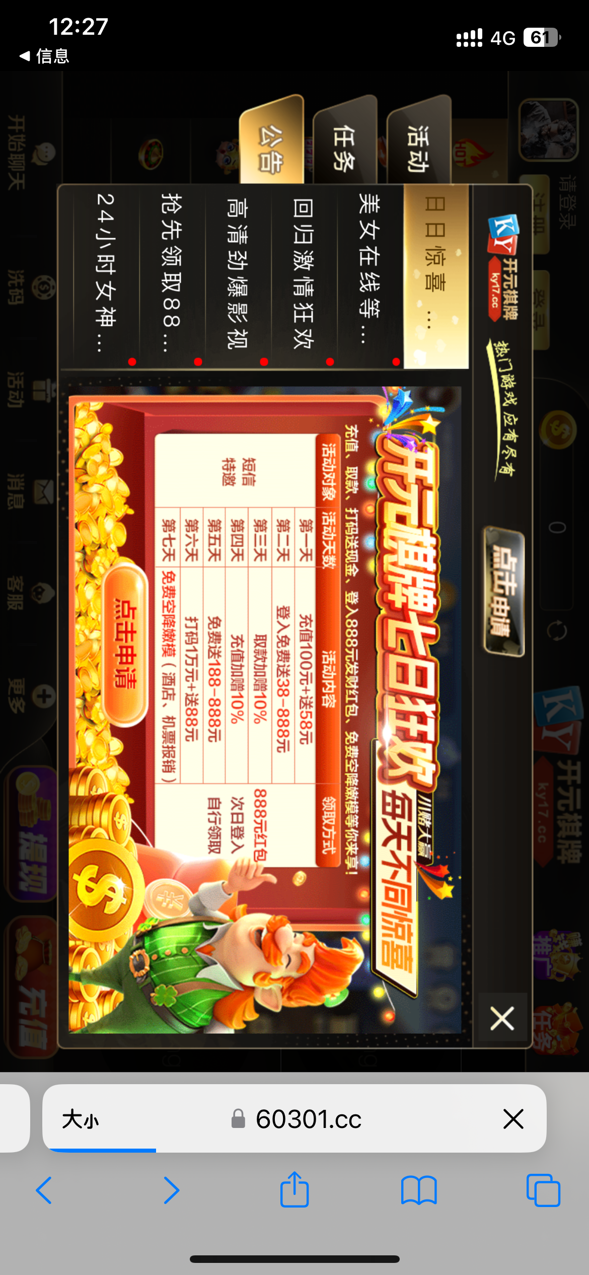 开元17黑不黑 有没有人玩过 福利看着还行 就第一天需要充值 后面有个最低38 和最低188 最后一天还有嫩模 真假有没有玩过的