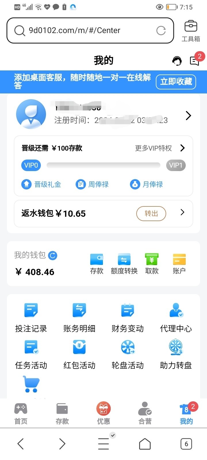 我这个不是刚签到的号 几个月的号签到送两元打上去的 提现真的挺悬的
