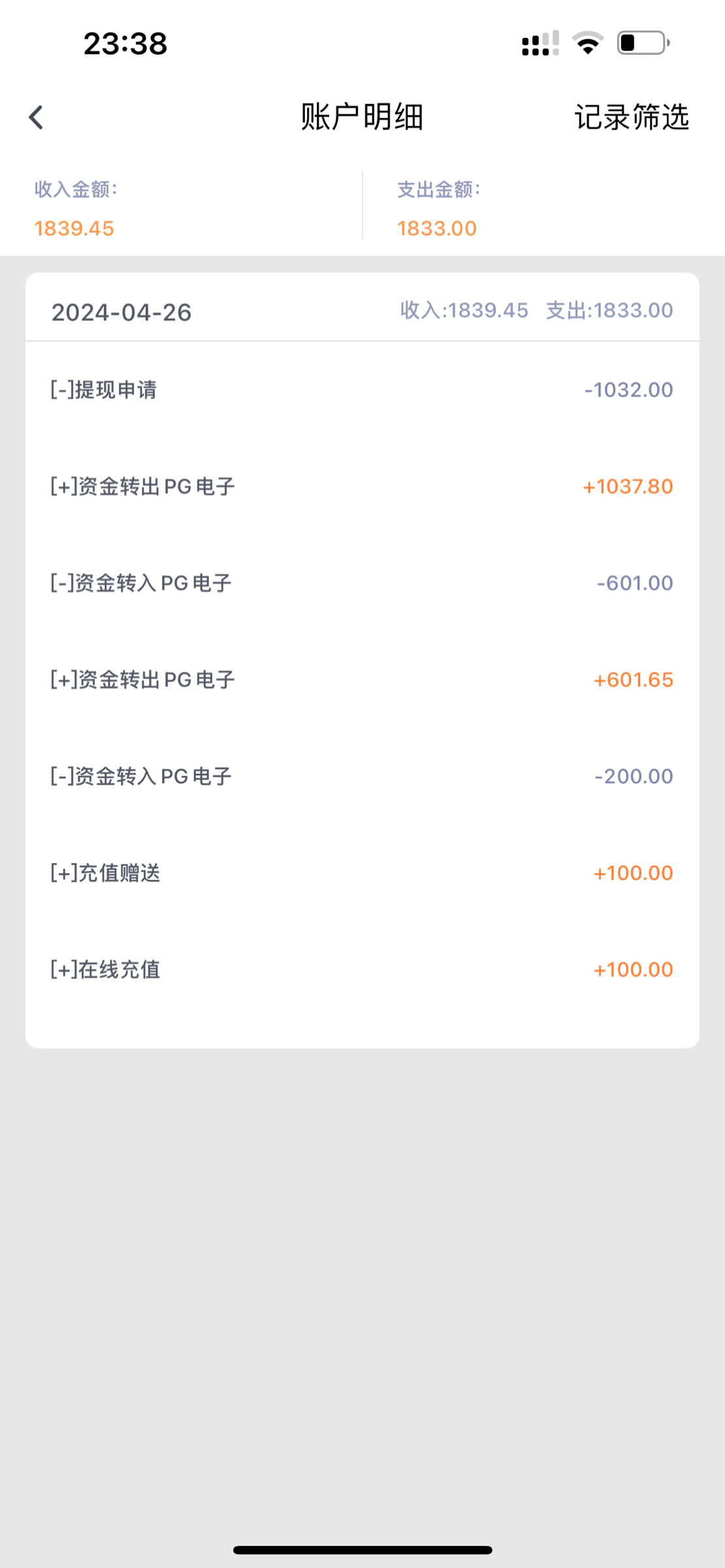 ID452263输了2000多,打了1万多流水,反一下