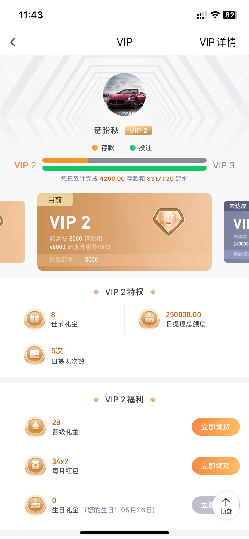 玩了两天 冲了四千多 打了八万多流水 能不能安排点彩金啊 uid717094
