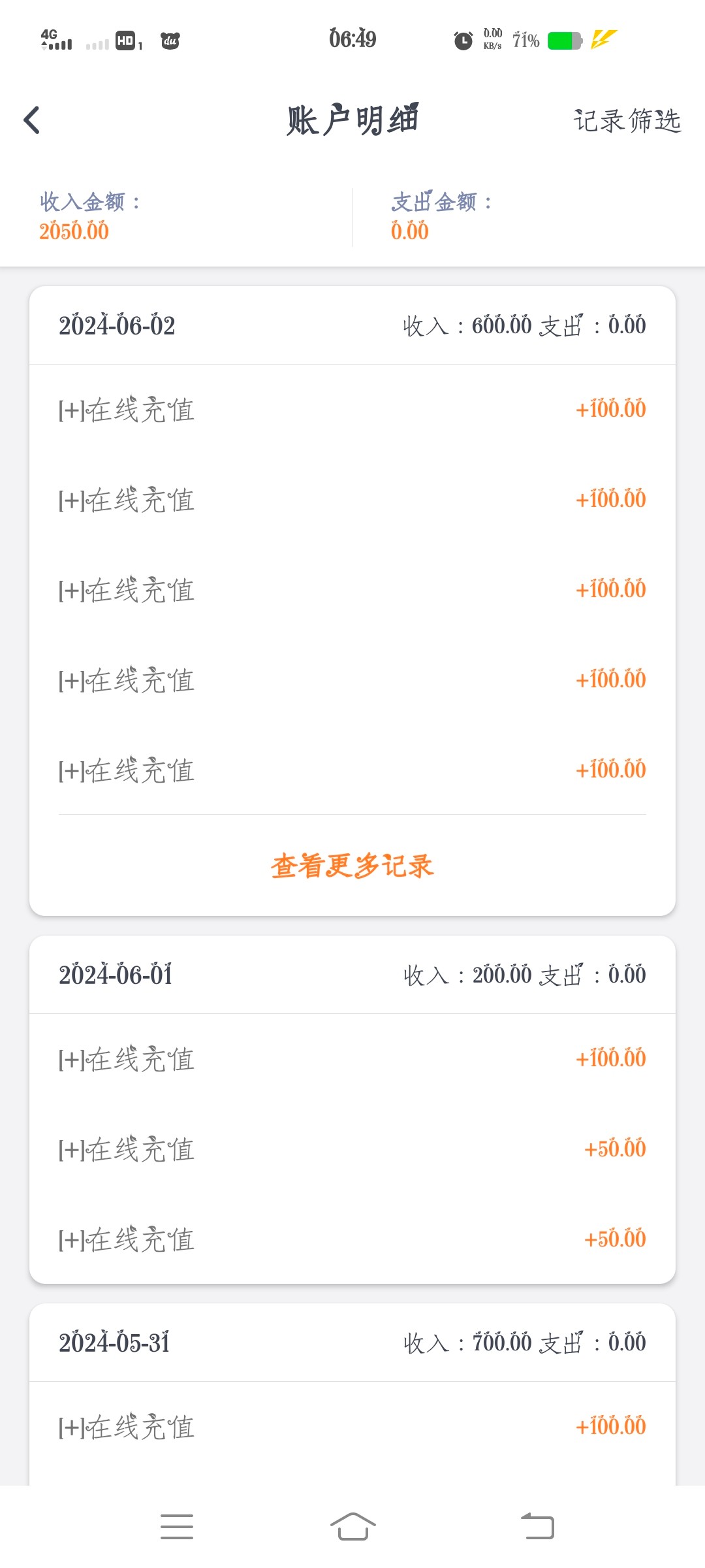 七天的充值