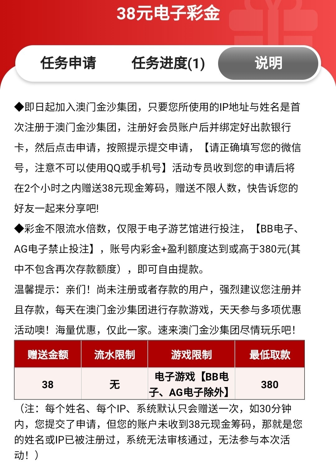新用户注册完善资料优惠中心自助申请38,