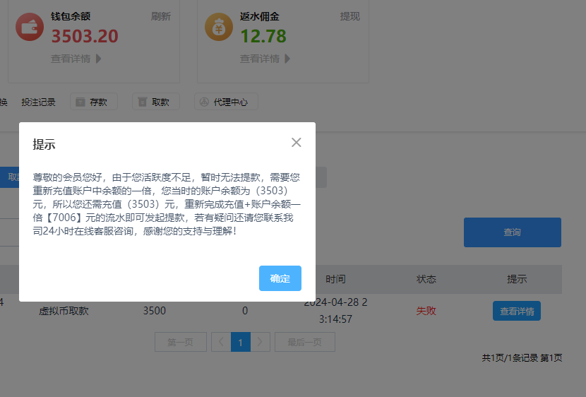 可惜了,这个台子不充值提款的话,要充值同等金额,你要提前充值,我提前充值20块钱都给我提了一千多