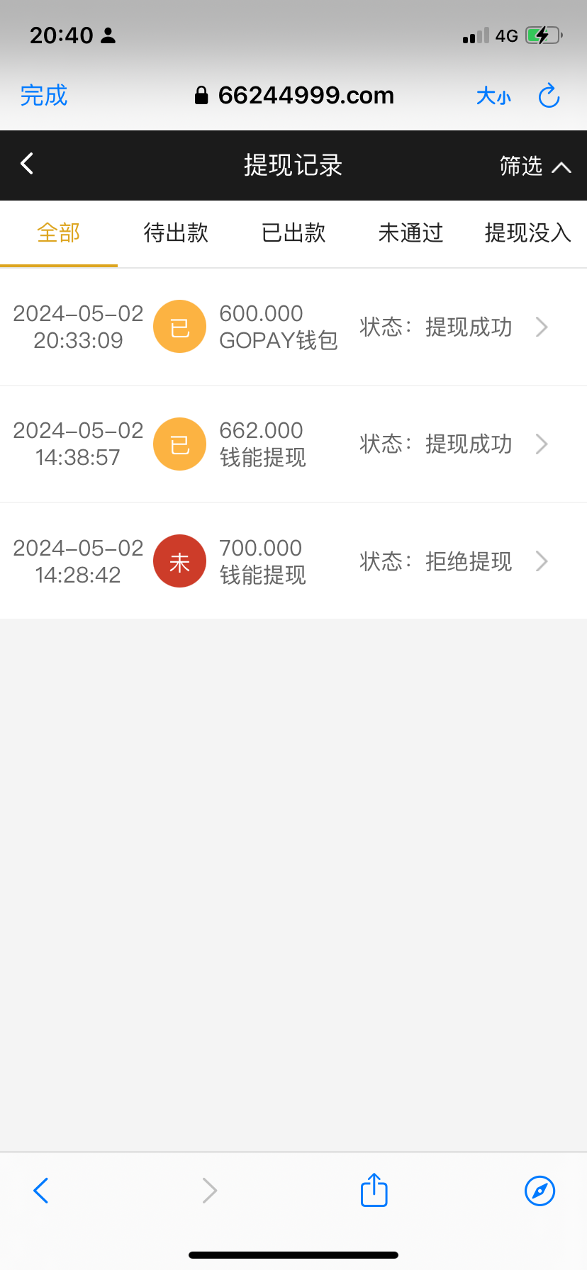 出不了,我老号充了几万,回馈打到100都黑