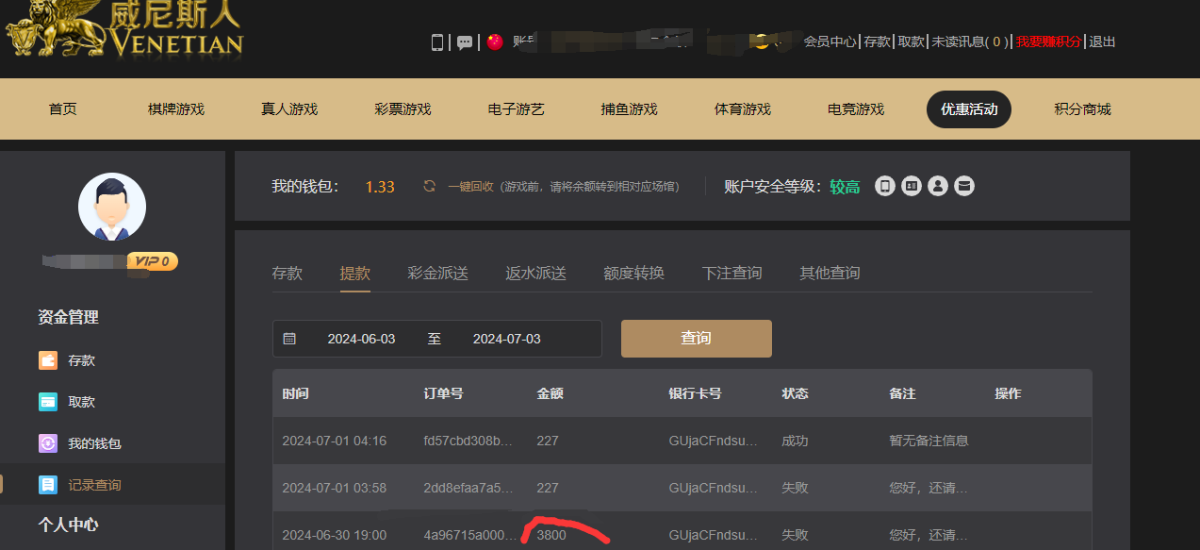 被黑金额: