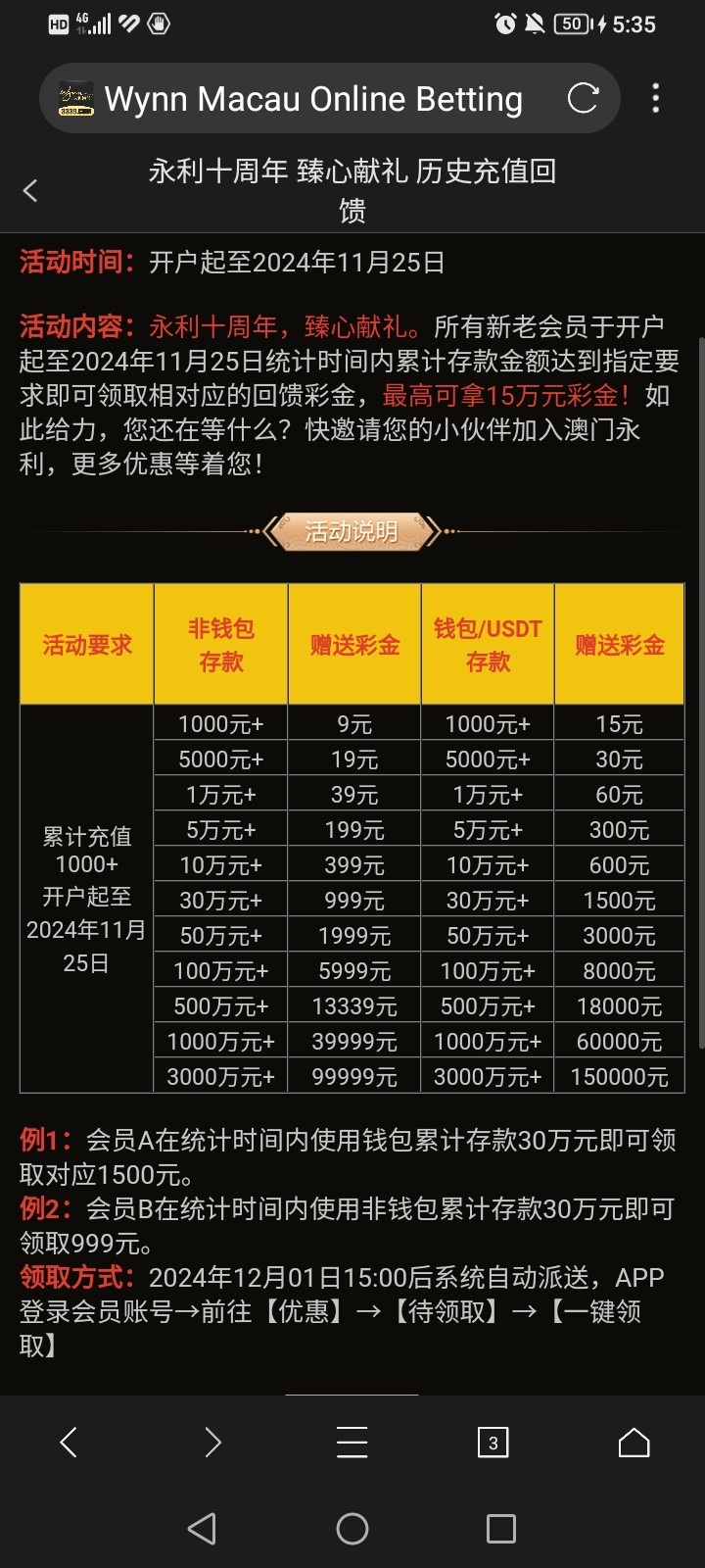 永利3339回馈彩金