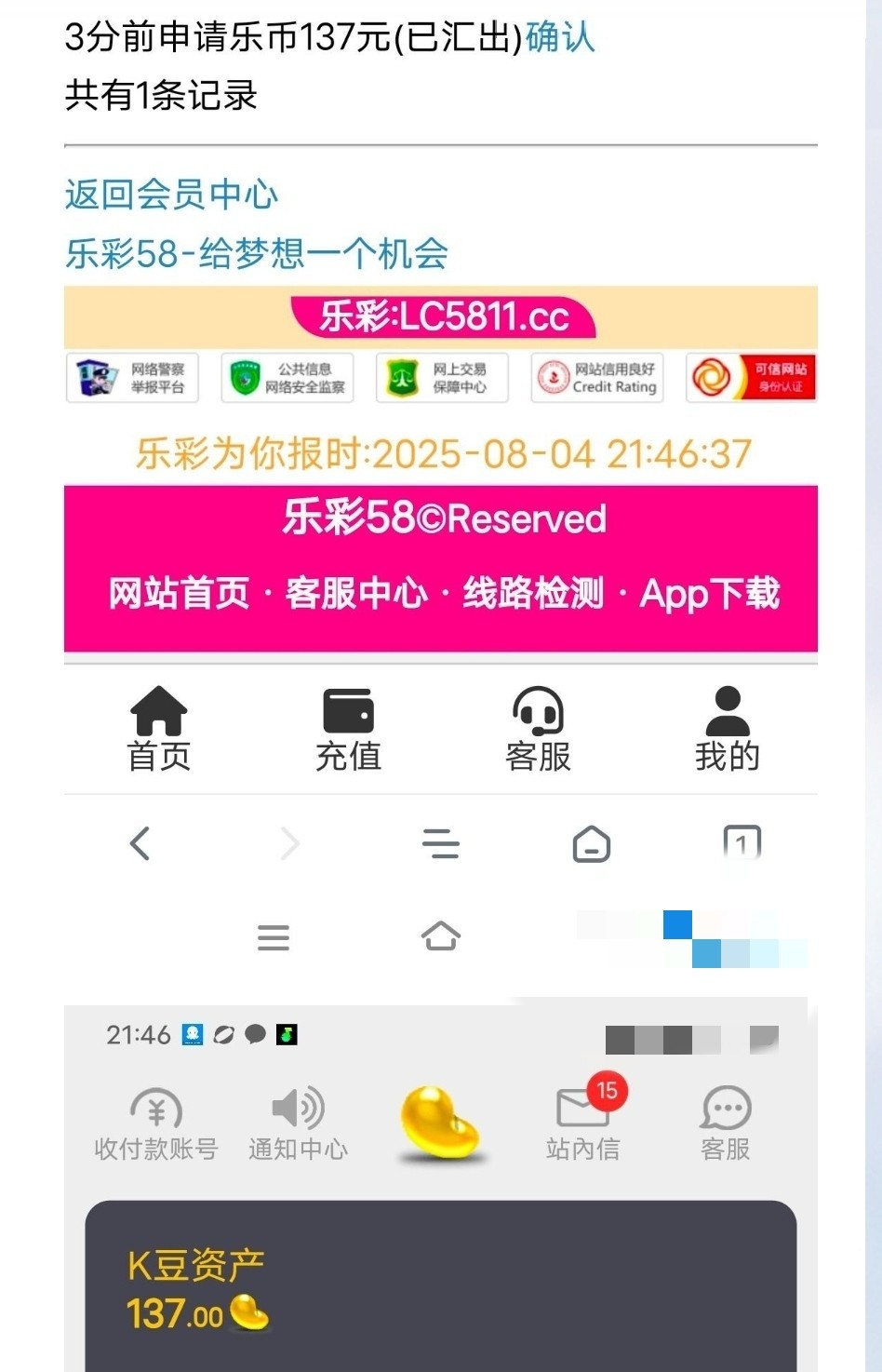 彩金好像只能打彩票,我没出款啊,图都是搬的,老哥们慎充