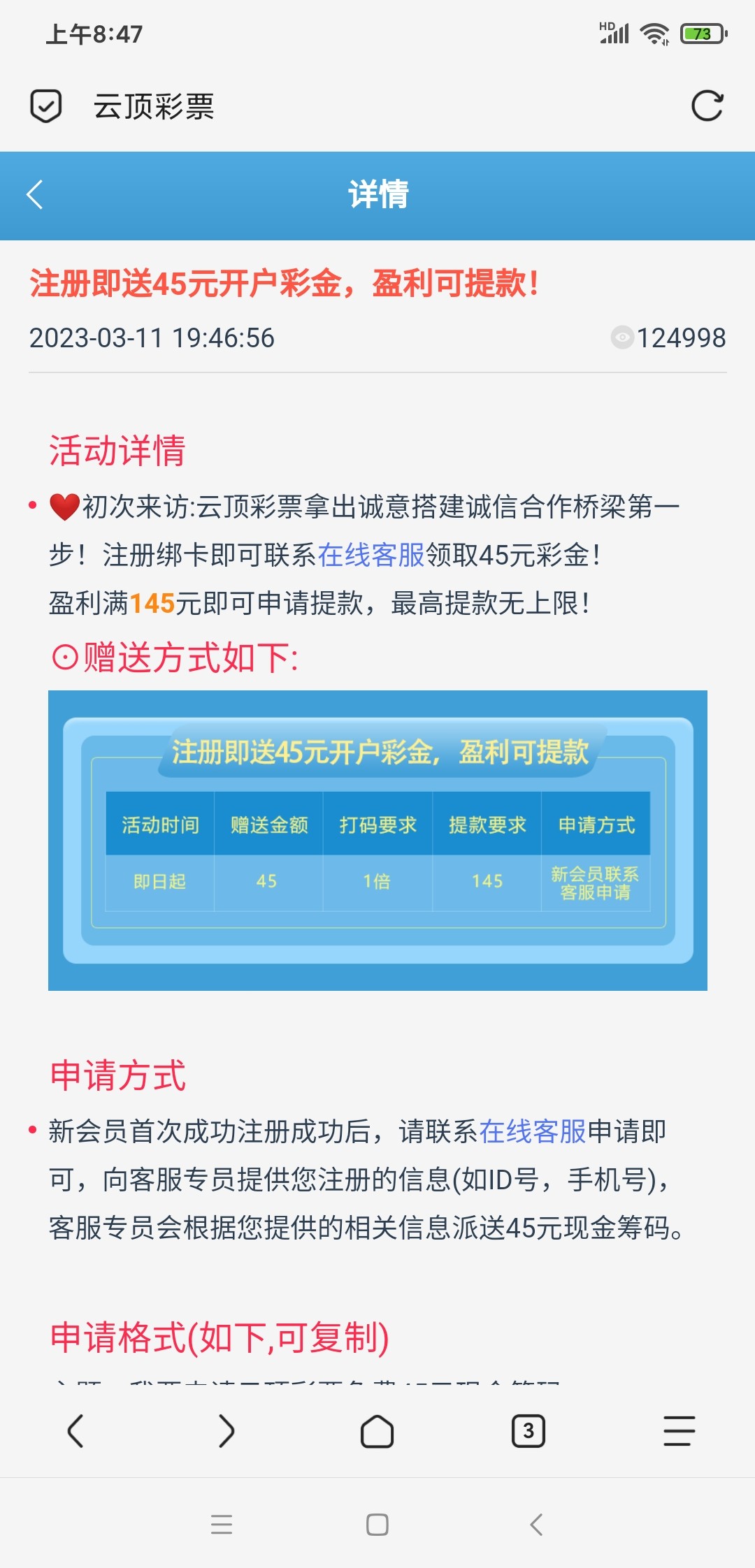 老白菜,以前申请彩金的时候三更半夜东北那边实时有人打了个电话给我核实信息,男的,问我账号多少,给他报了之后45彩金立马就到了,后面出款也没卡我,不知道现在怎么样。