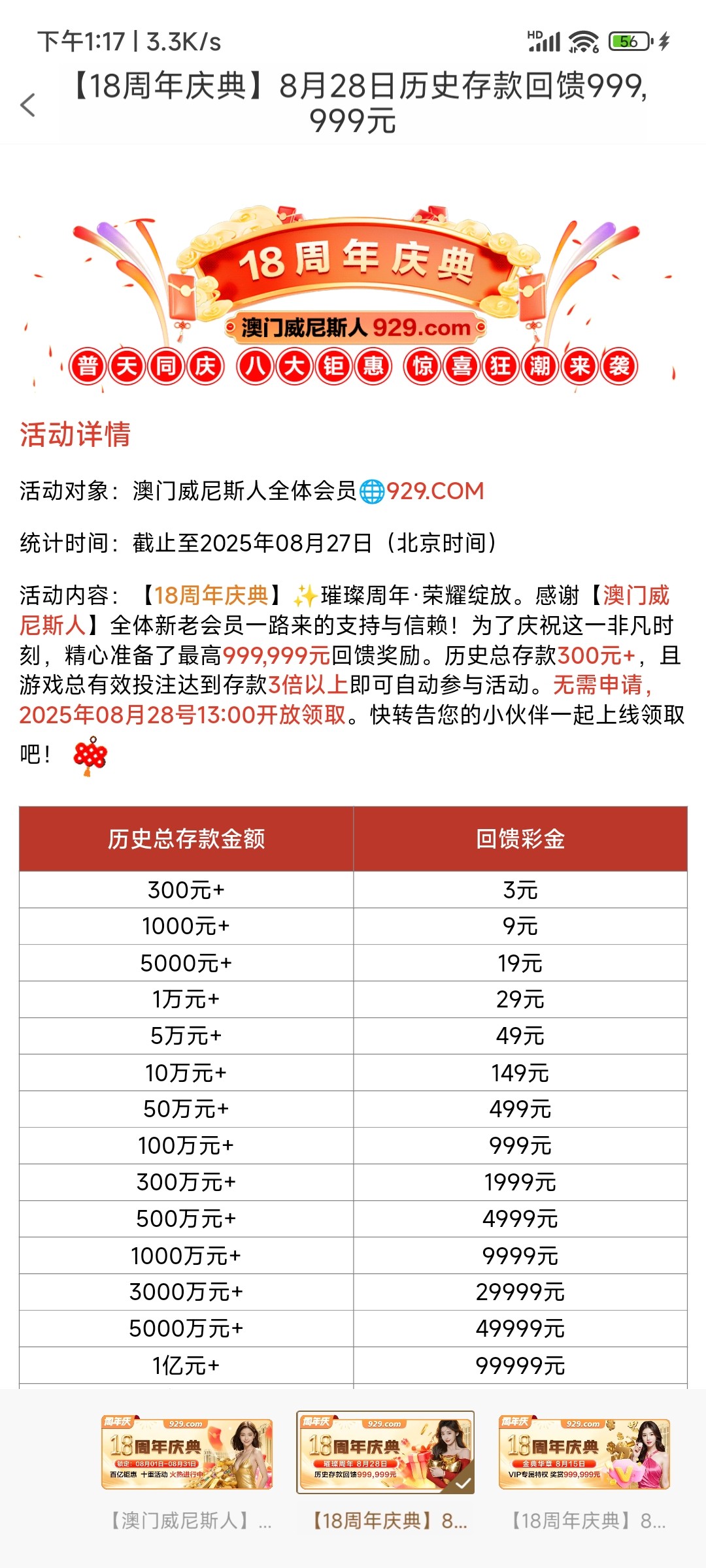 【威尼斯929】周年回馈