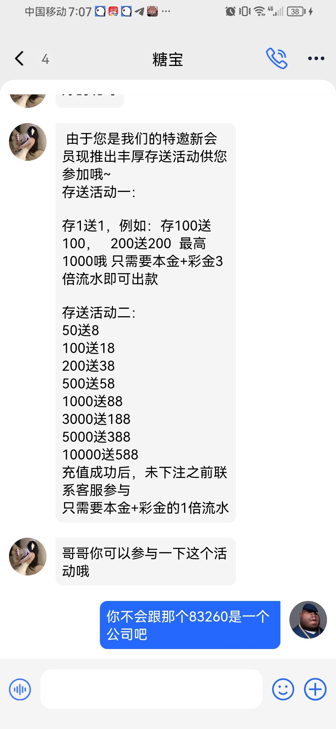 下午被新葡京83260这黑台黑了我个首充,三百都不给提,没想到下午四五点的时候接了个特邀,送了88,三倍流水,还不限制游戏,三分钟我就干到200出了,然后充了个200+200,本一彩三,没敢存一千,出多少存了多少,对于我来说也是0难度,几分钟就干到八百