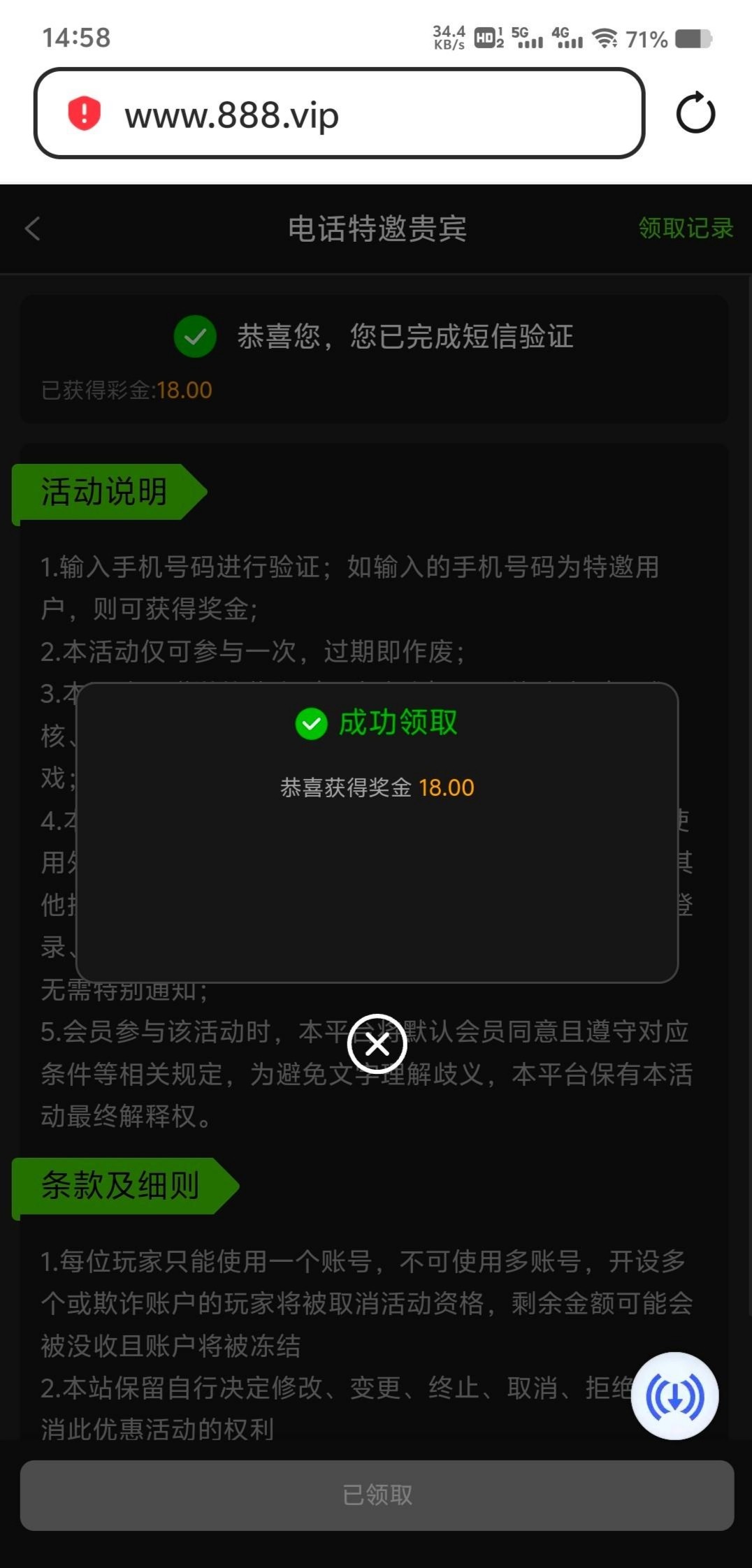 之前领取过,现在又能领取了 电话特邀