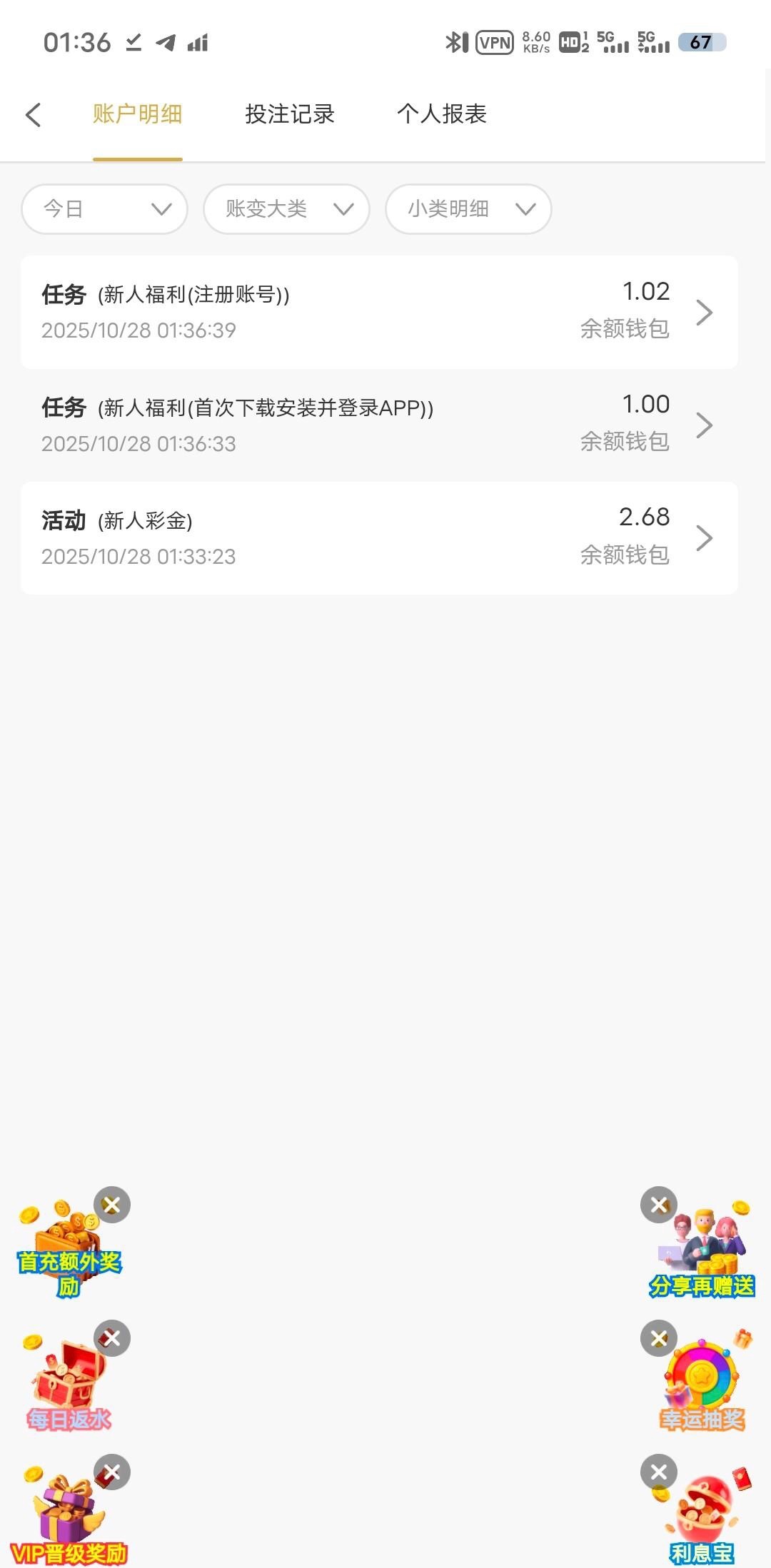 6u.ag进不去的开vpn注册+绑定地址+下载app任务中心领取大概4-5u 提现自测