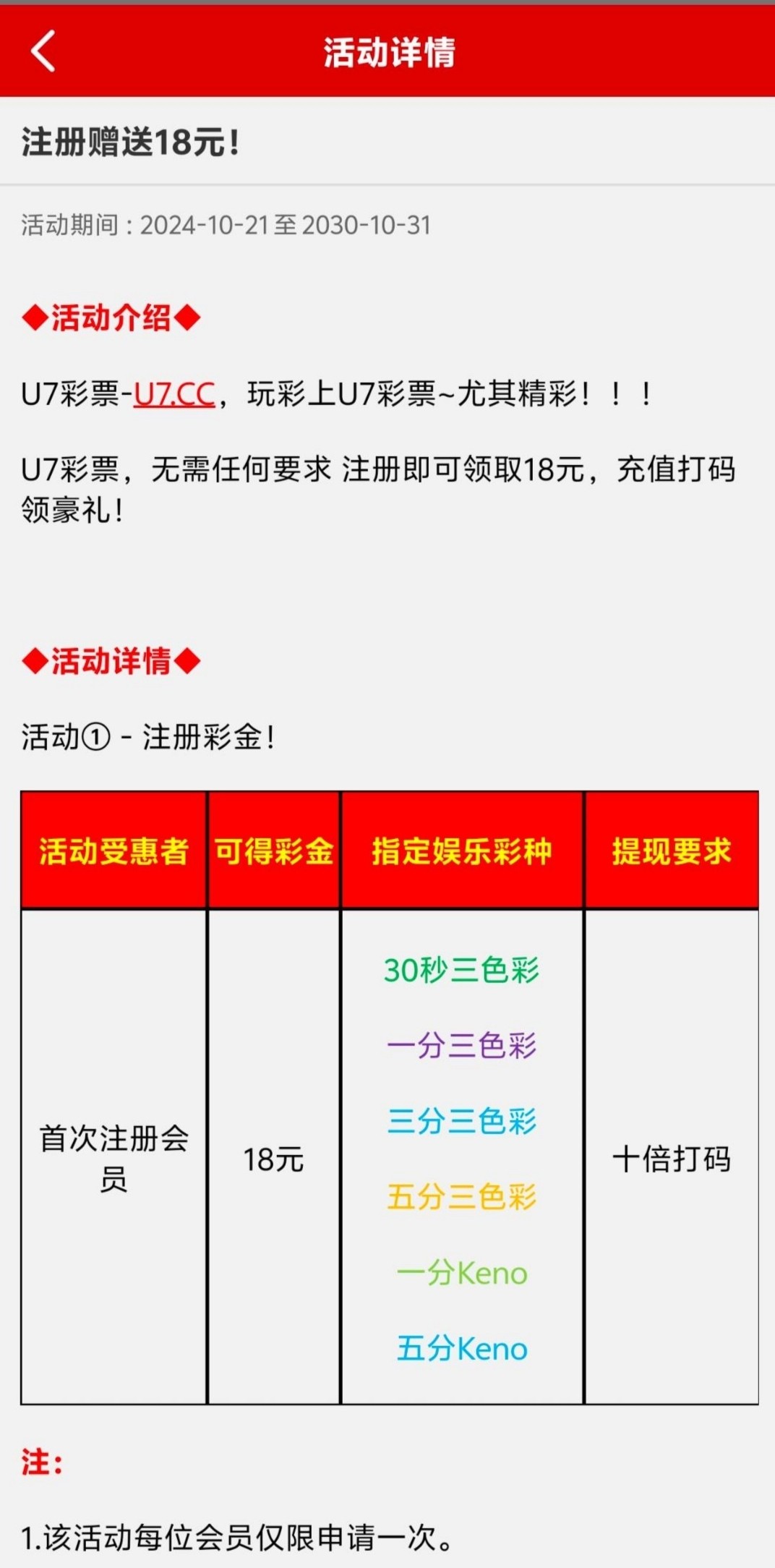 【U7彩票】——注册彩金