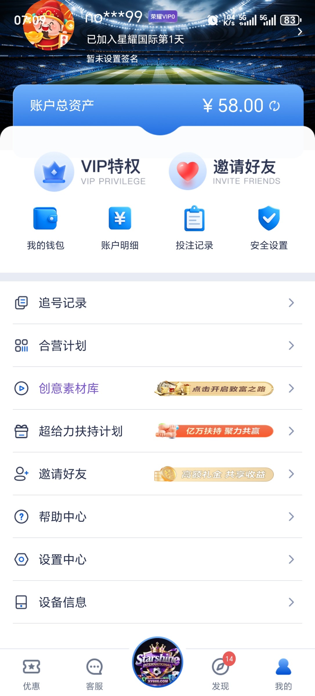 星耀领到了58 本帖反馈一下 交流
