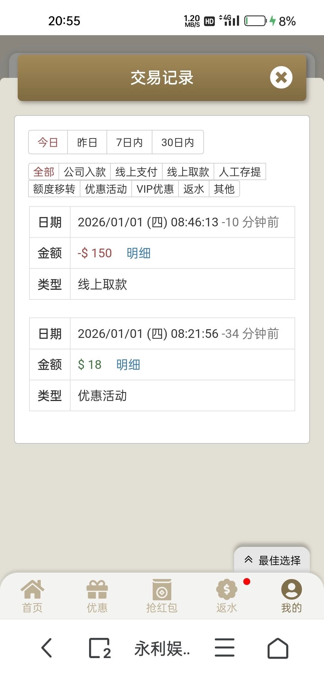 碰瓷 打电话说注册送彩金 送了18 提了150 秒到账 链接 01197.vip 这是客服报给我的网址