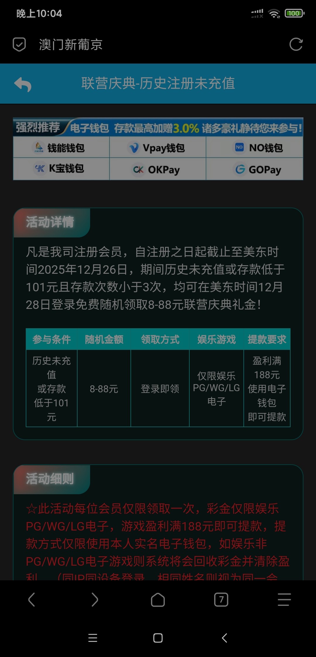【澳门新葡京8822】登录弹窗彩金