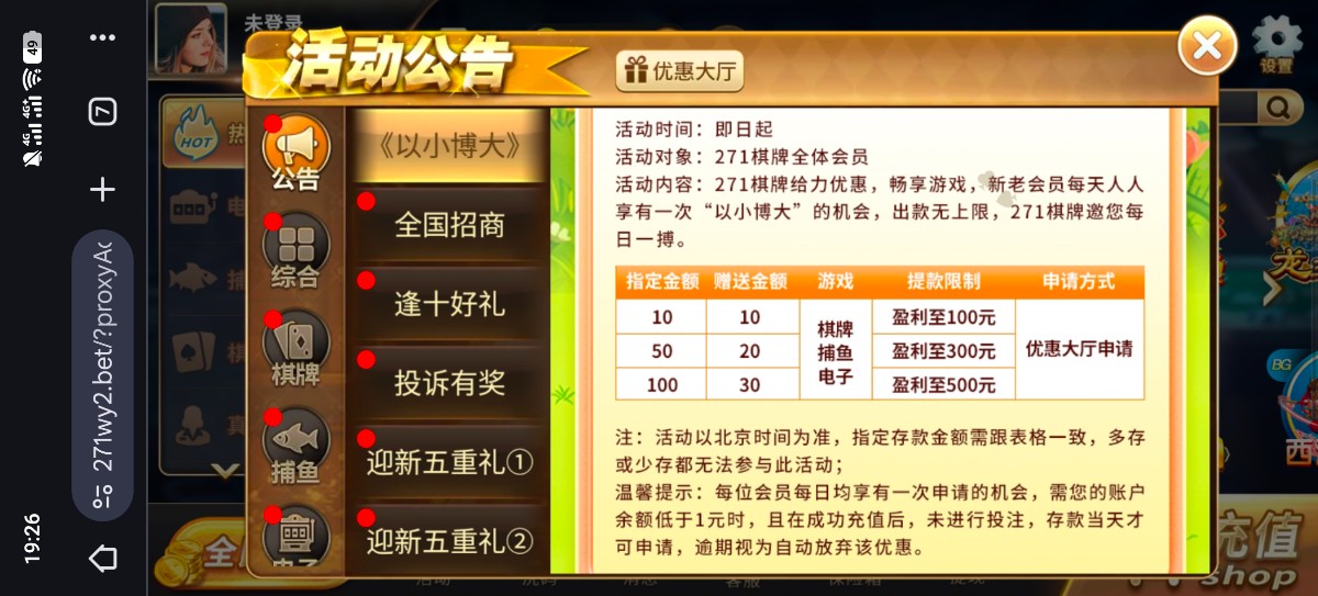 每天都可以申请一次以小博大 10+10最低100出款 想以小博大的水友去试试手气