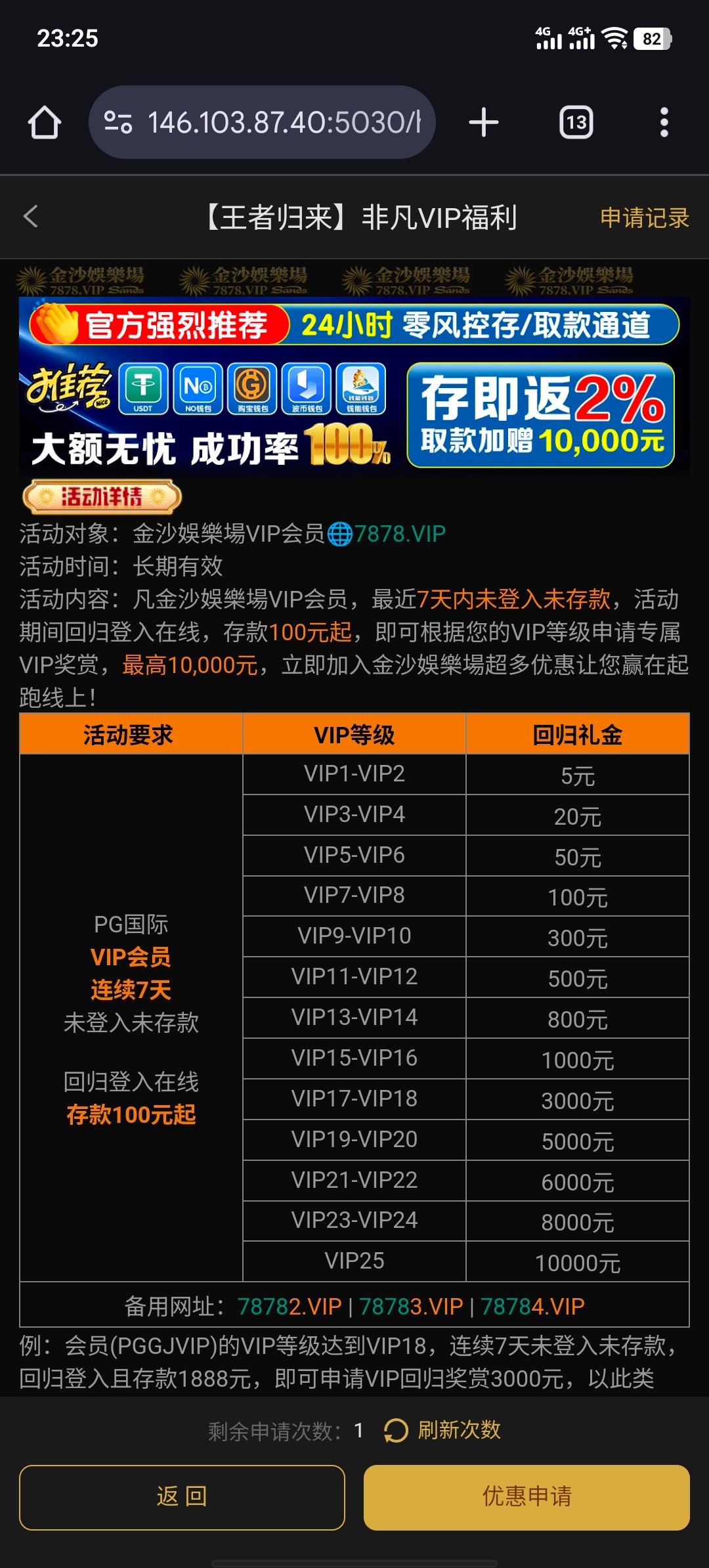 有号的 充值过登录满vip1自助申请 5元
