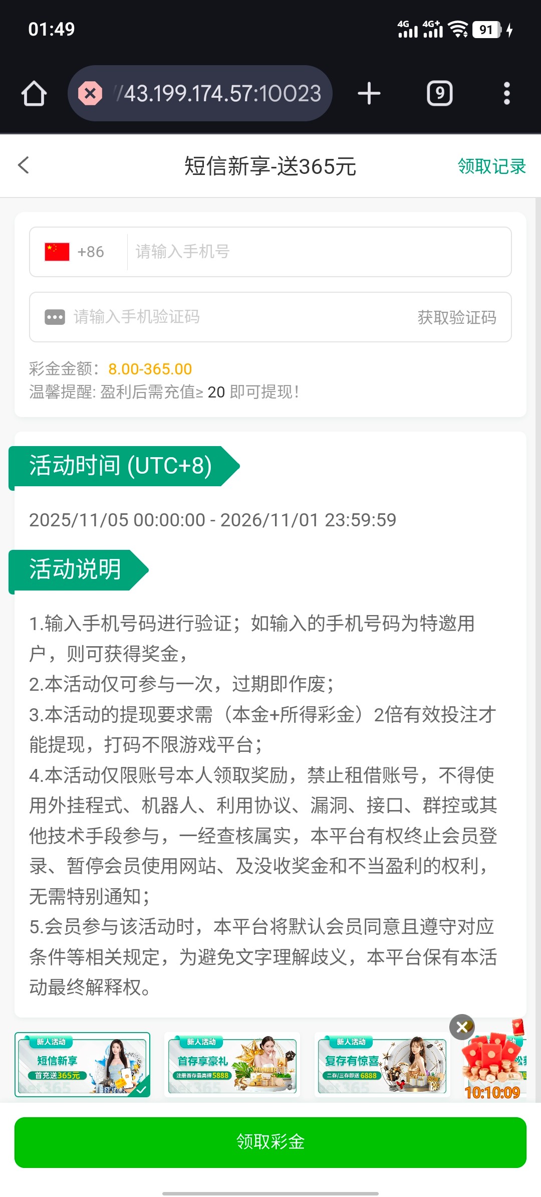 注册账号绑定信息 输入手机号码自助申请 最低派送8元彩金 提现要冲20自测