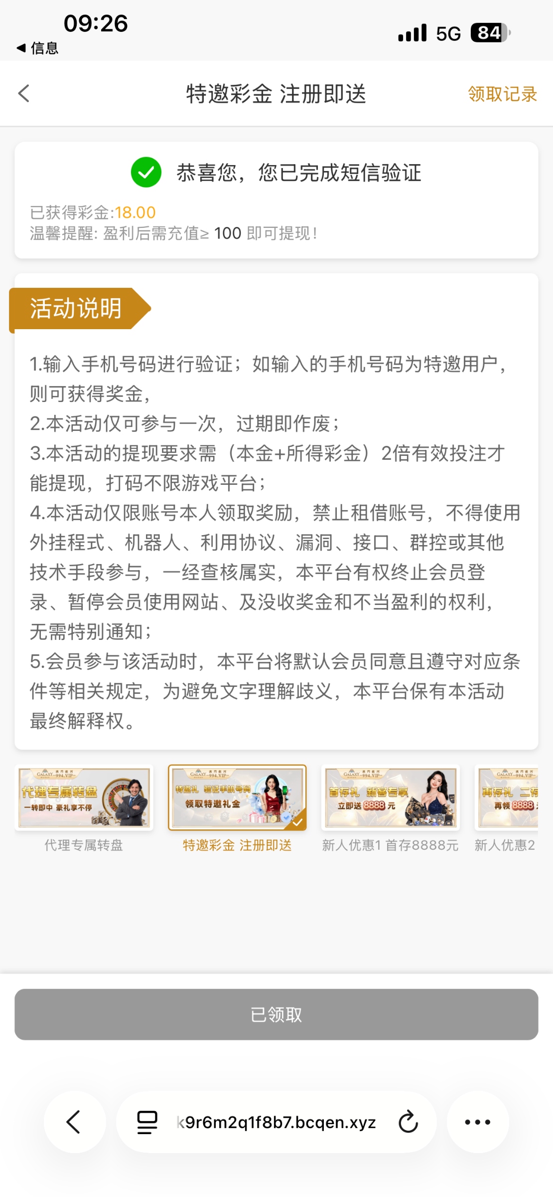 短信验证彩金,出款要充值,自行考虑