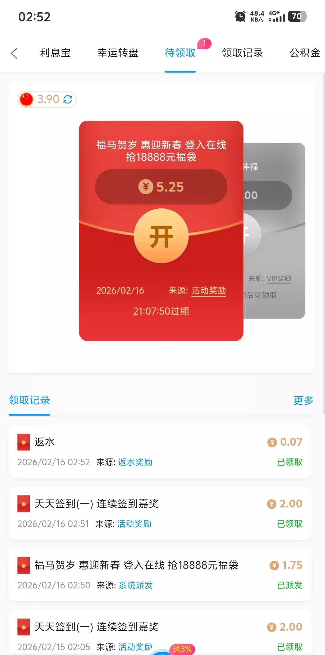 领到3个能量