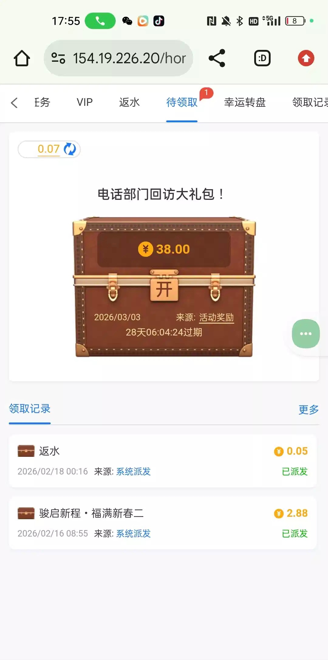 接到电话送的没接到的可以去看看