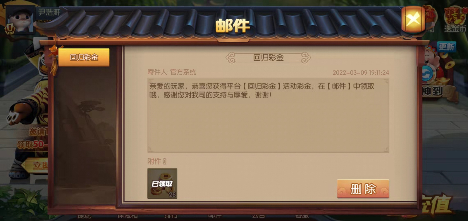 老用户找客服申请回归彩金送28