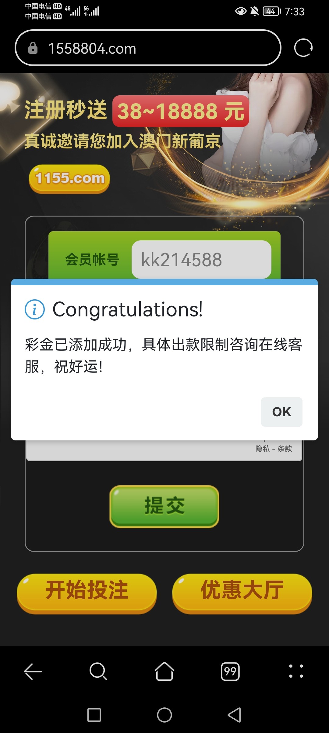 新普京碰特邀送38到188