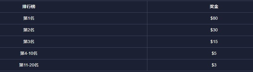 每日比赛结束后,前20名的锦标赛流水排行榜和锦标赛单局游戏盈利倍数排行榜中的最高前20名都将获得奖金;