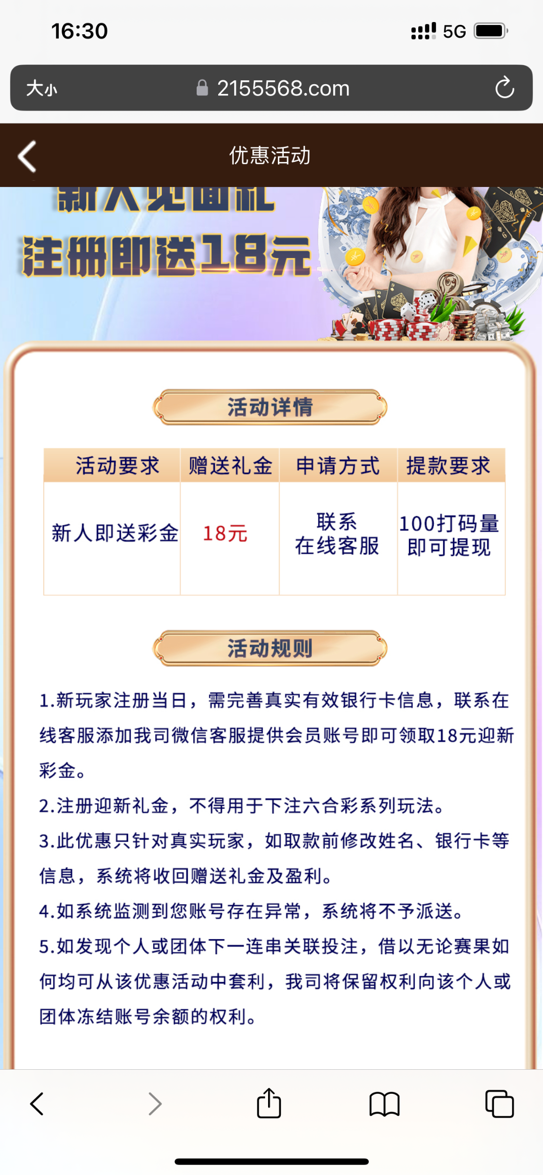 注册绑卡联系客服送18,最低100提,限制看下图