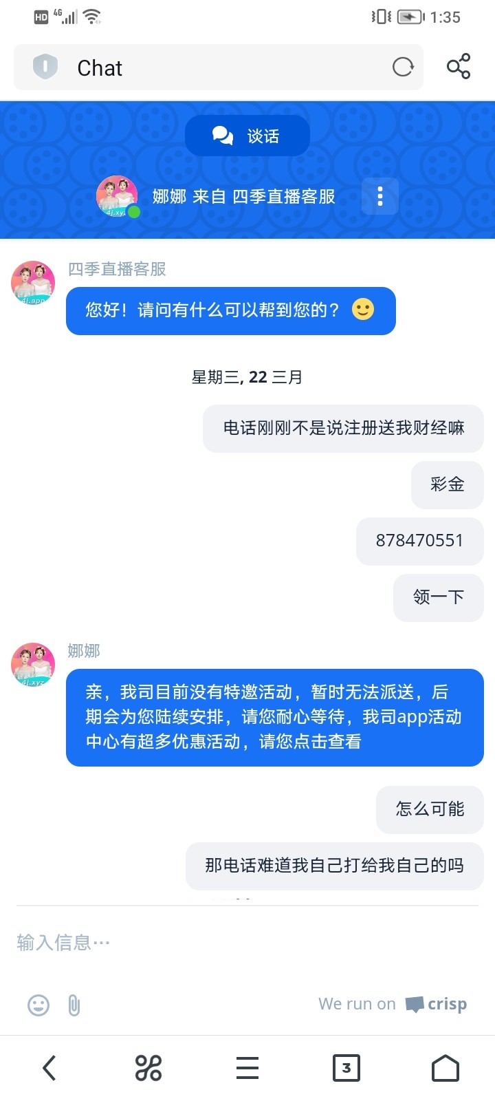 客服说电话特邀是随机给彩金的,不是每个人都有