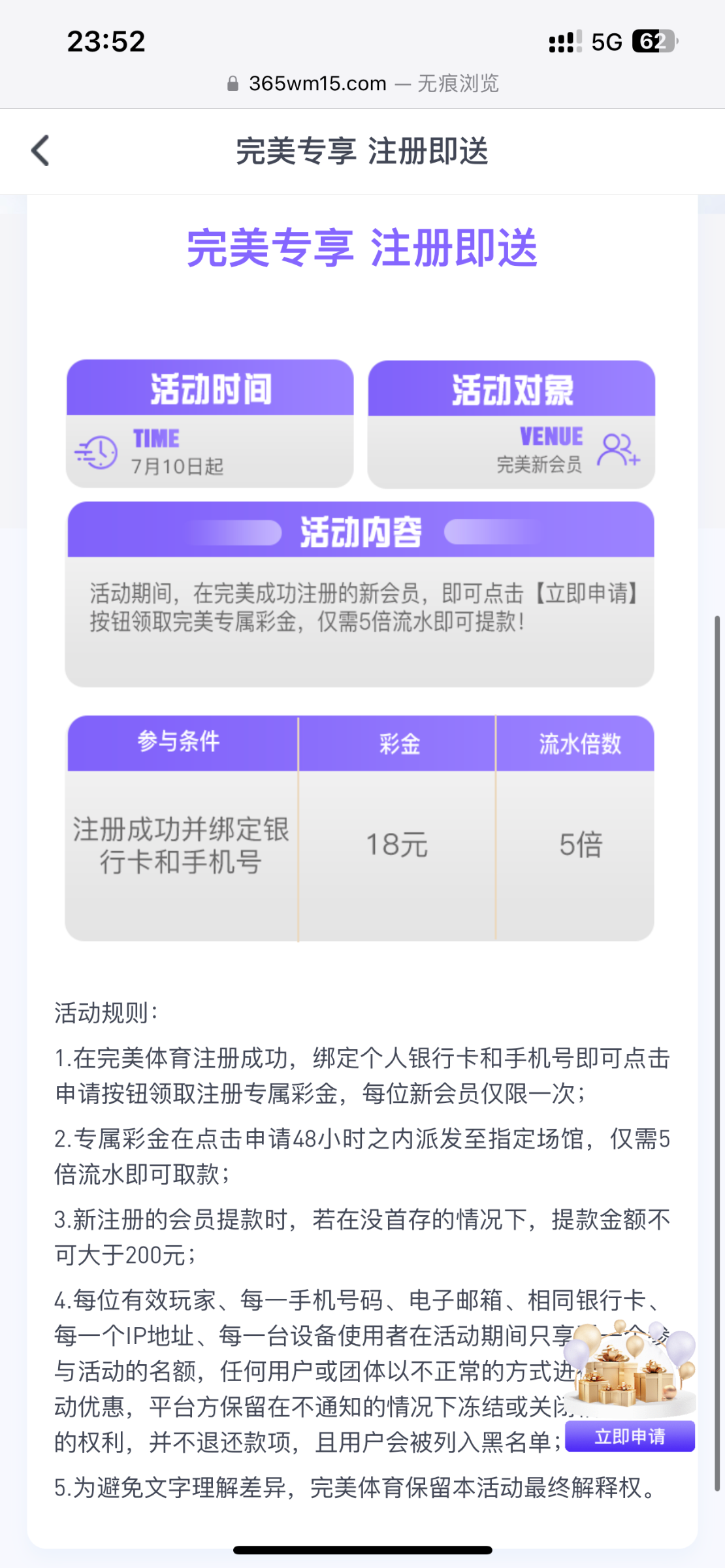新用户注册绑定手机号银行卡-优惠-新人活动自助申请18彩金,五倍流水提 最高提200 禁止充值