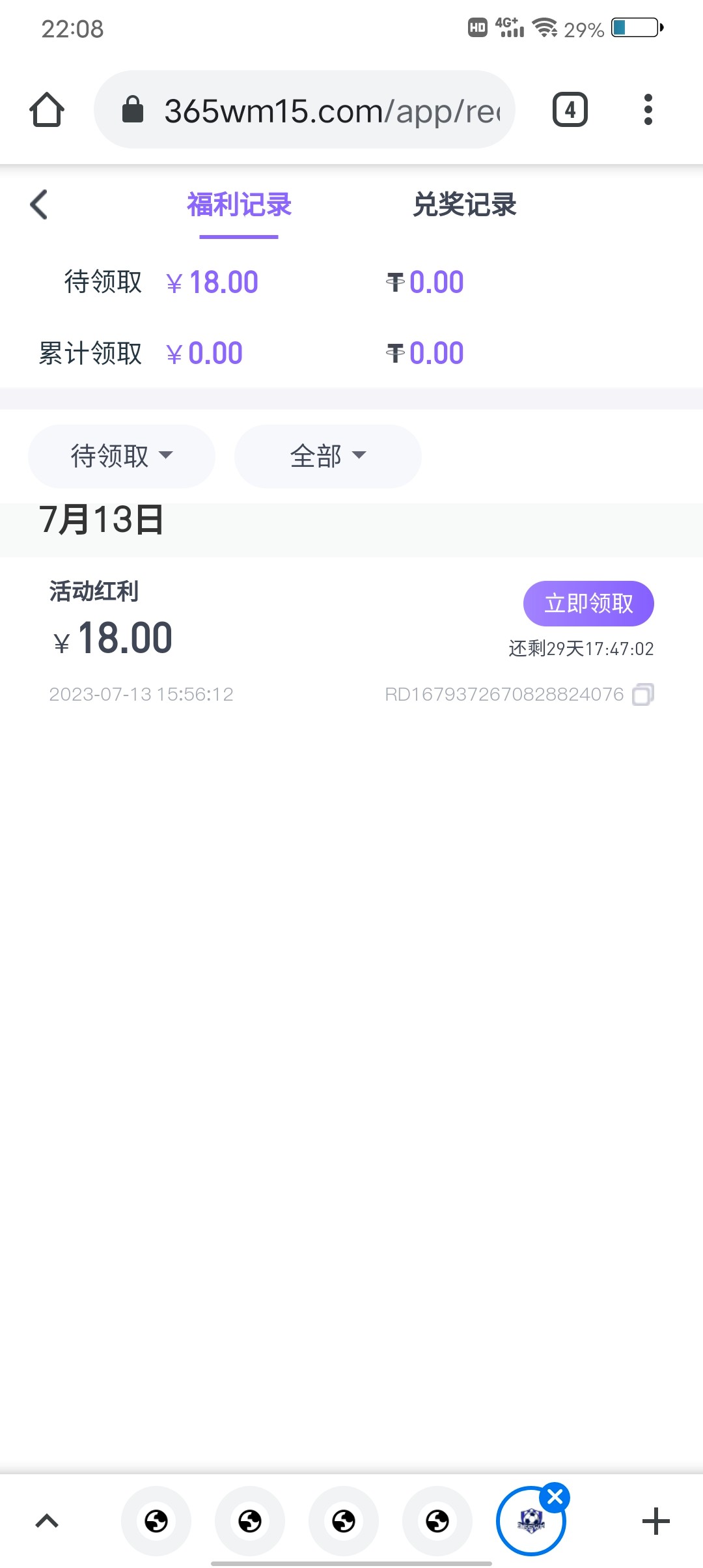 前天凌晨注册的今天才送,在福利中心里面领18上100提现到账了
